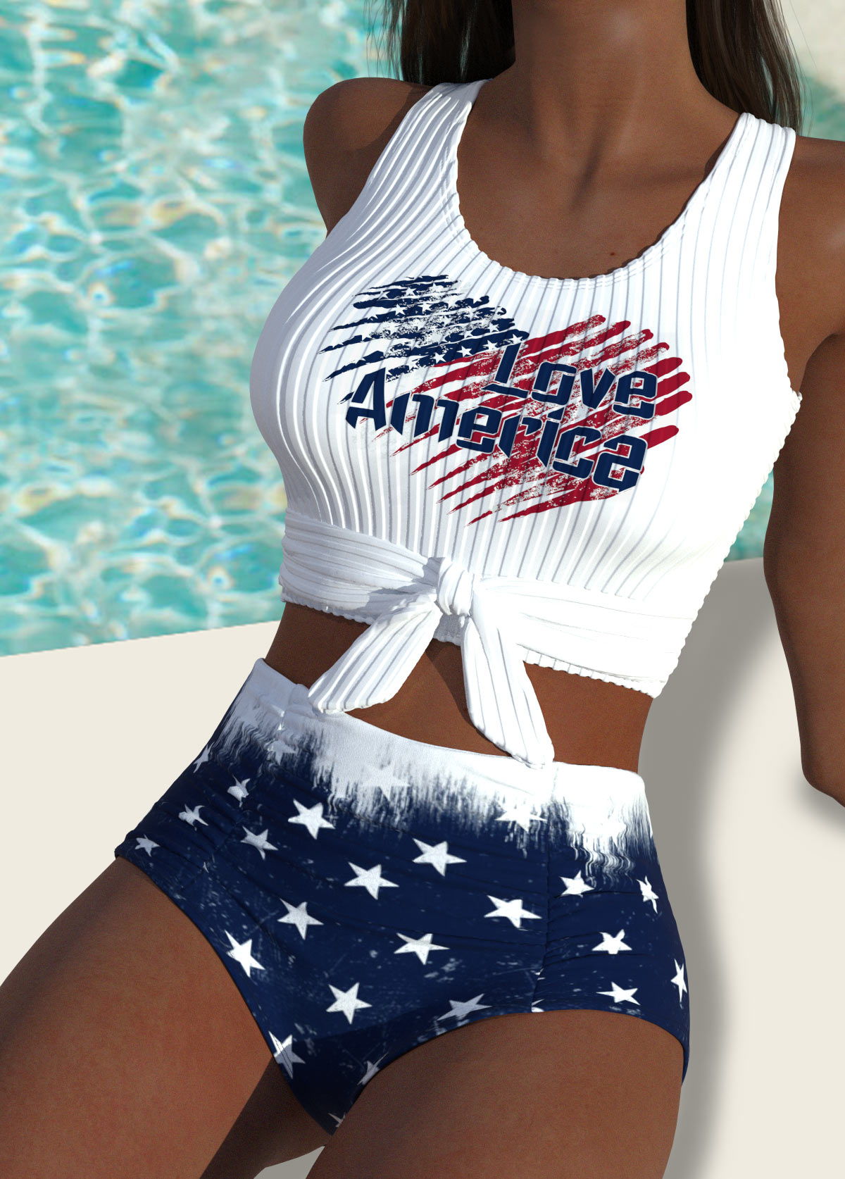 High Waisted American Flag Print Blue Bikini Set Rosewe®