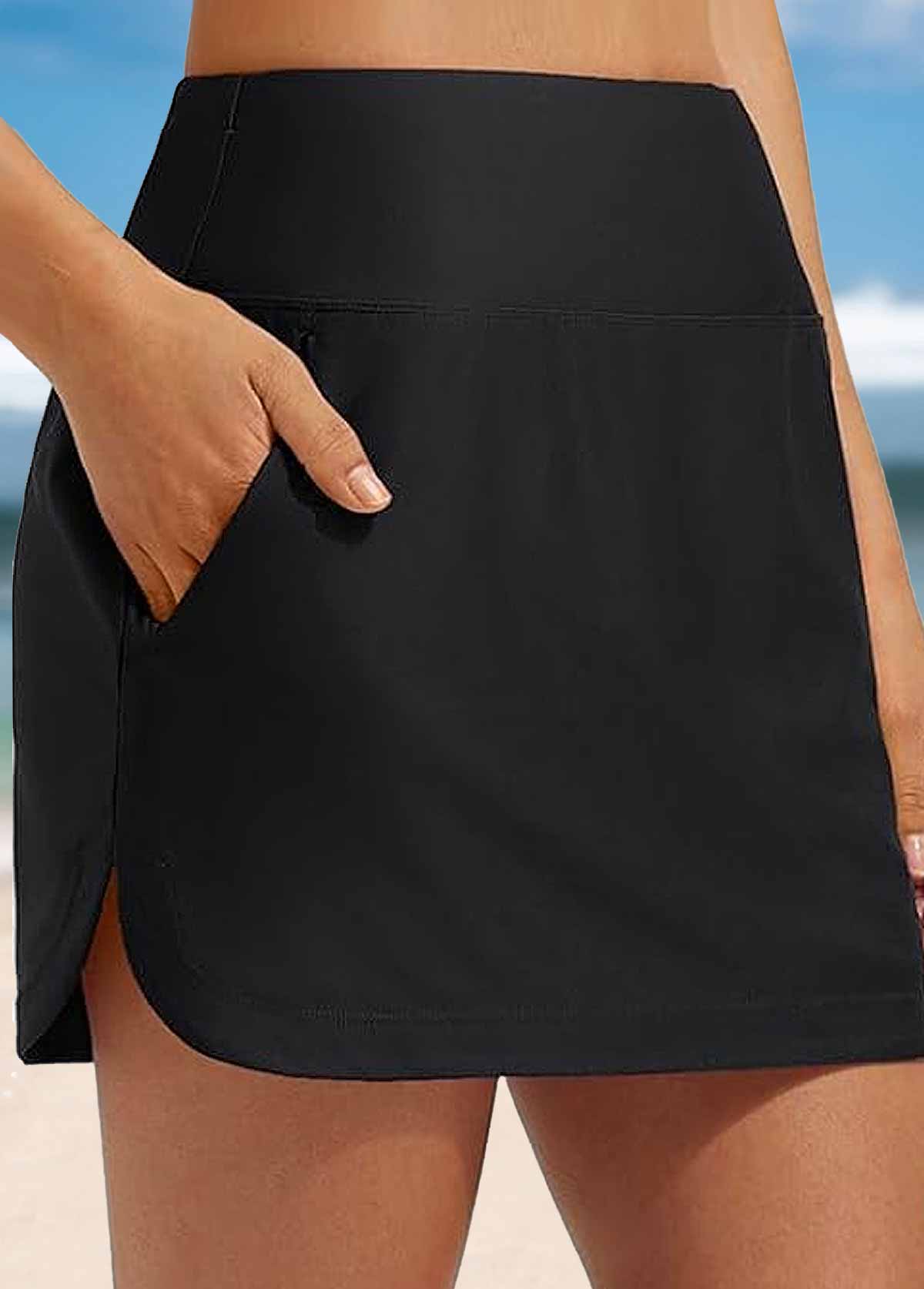 High Waisted Black Wide Waistband Pantskirt Rosewe®