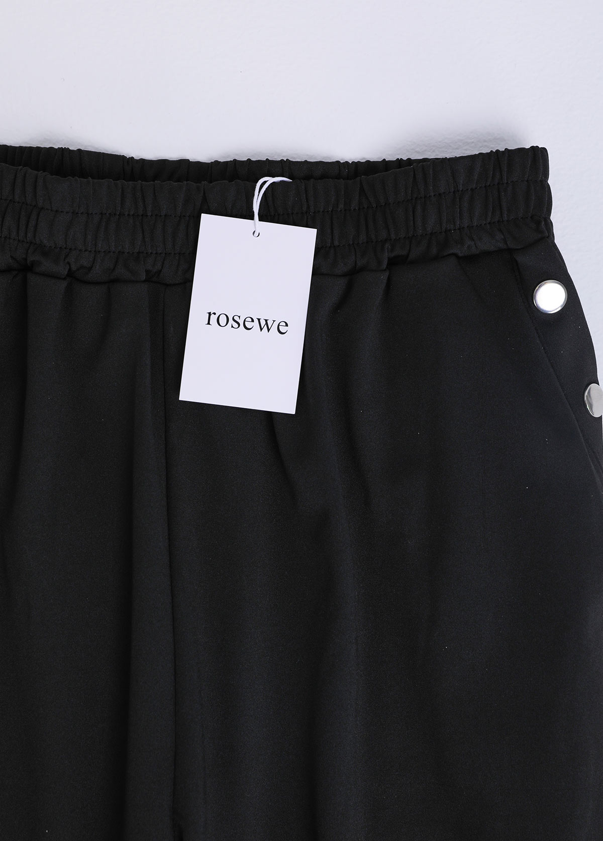 High Waisted Pocket Black Jogger Elastic Waist Pants Rosewe®