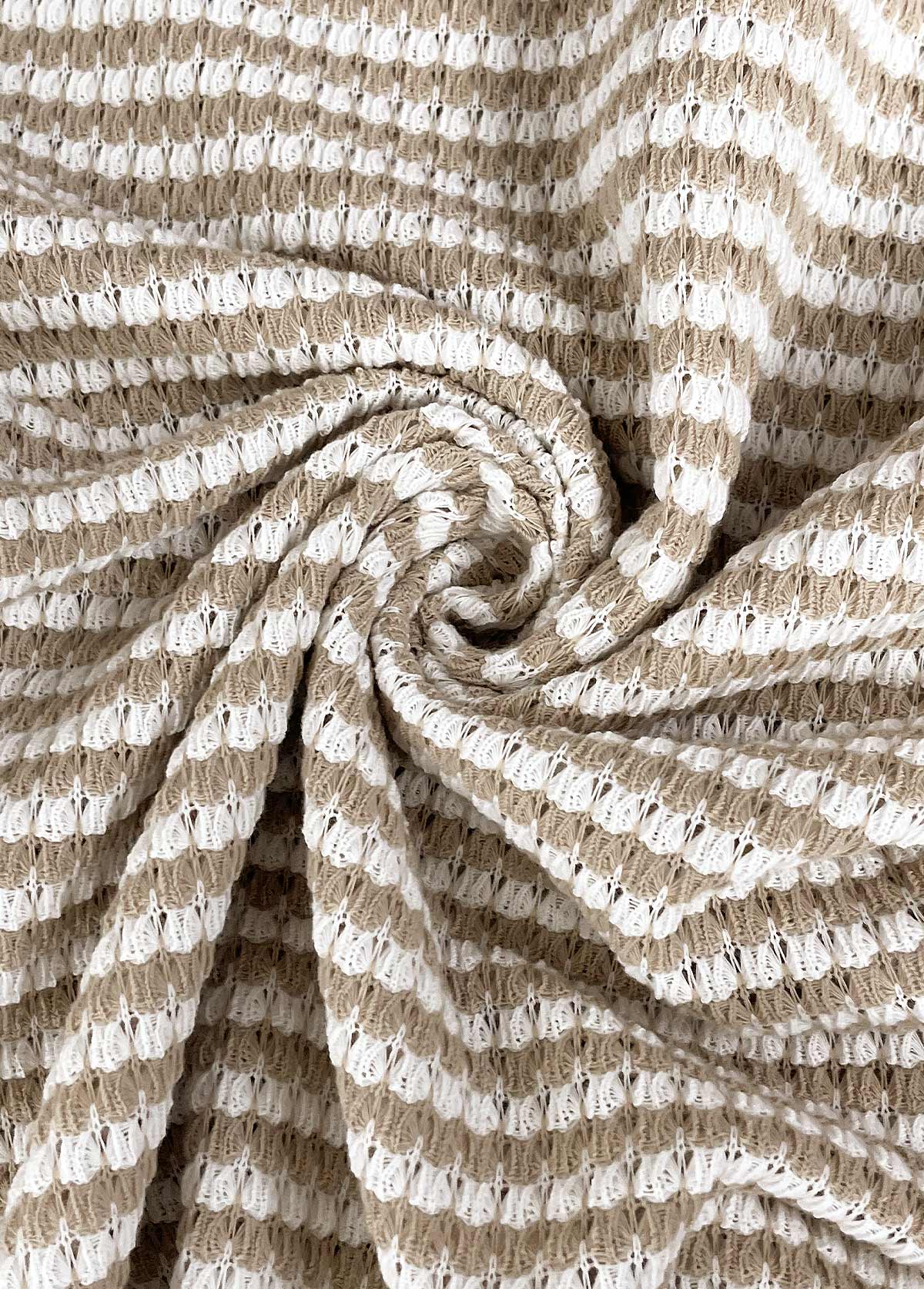 Jacquard Light Coffee Long Sleeve Round Neck T Shirt