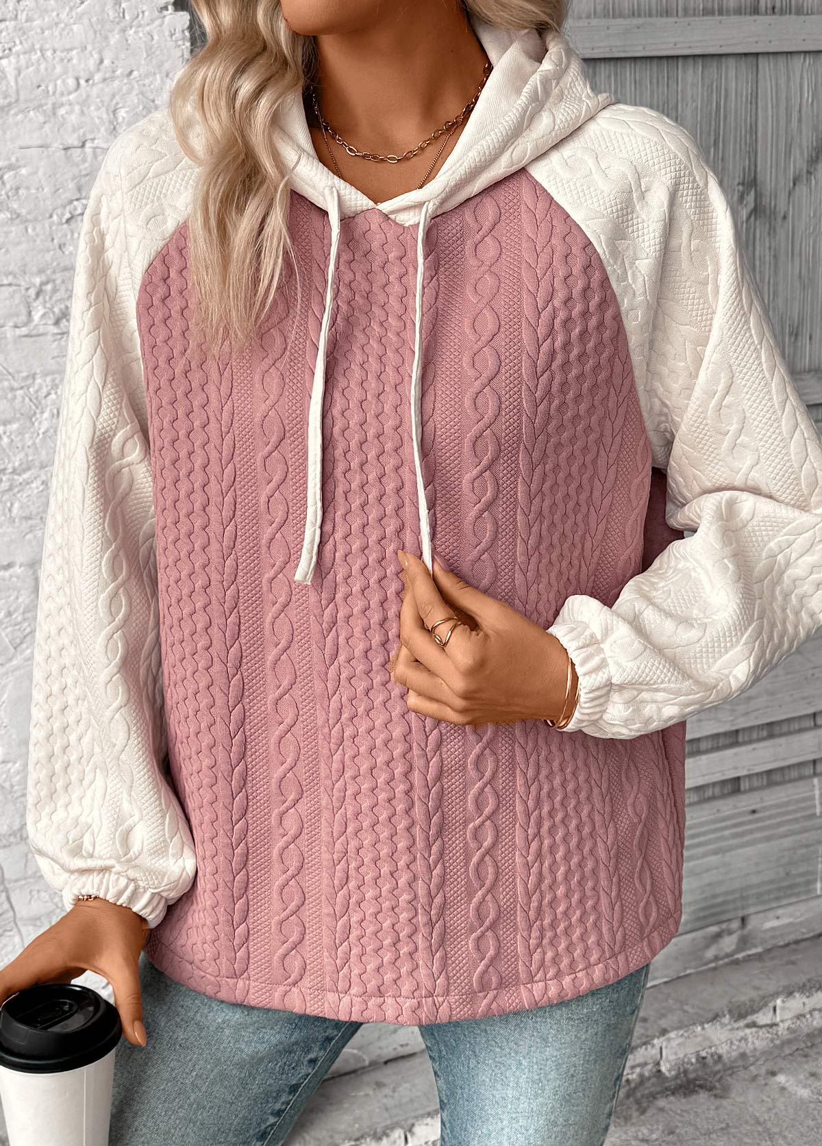 Jacquard Patchwork Pink Long Sleeve Hoodie Rosewe®
