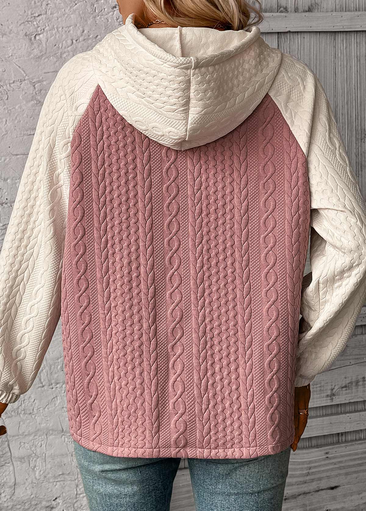 Jacquard Patchwork Pink Long Sleeve Hoodie