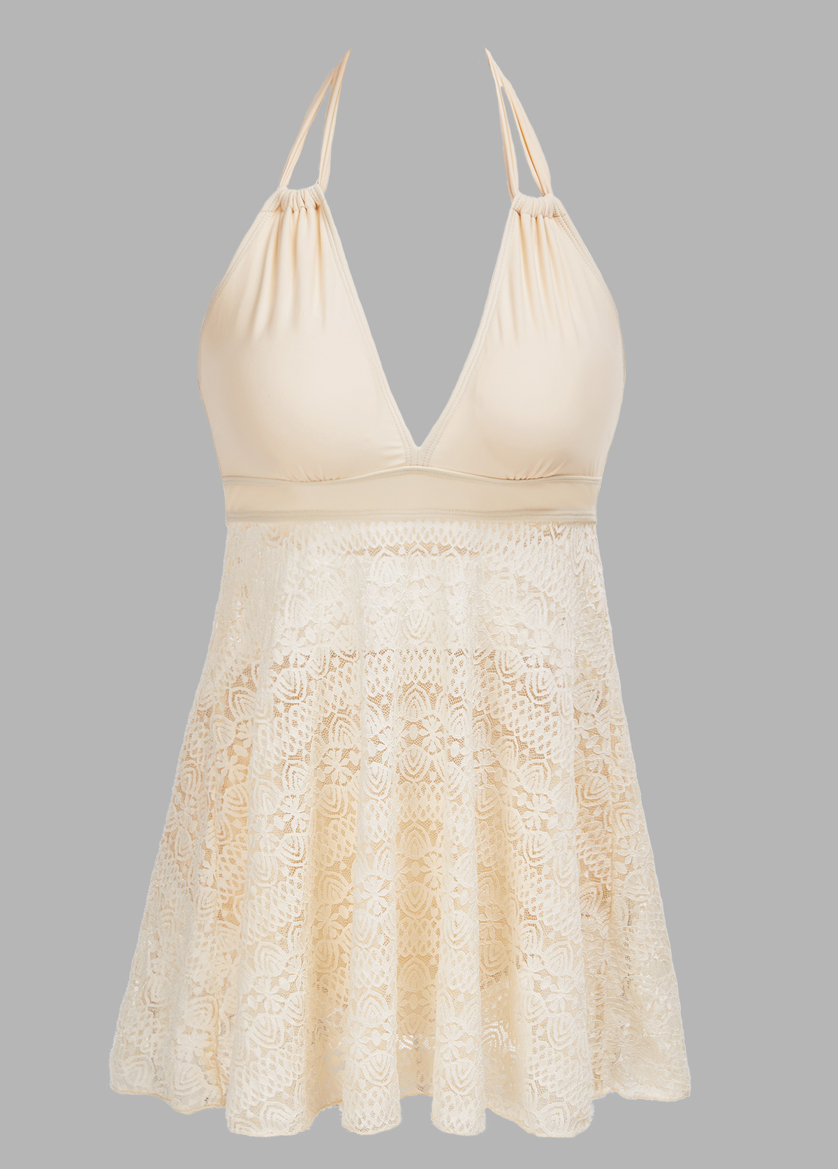 SALE Mid Waisted Lace Beige Tankini Set Rosewe®