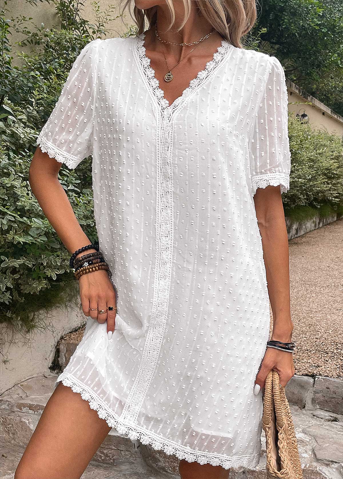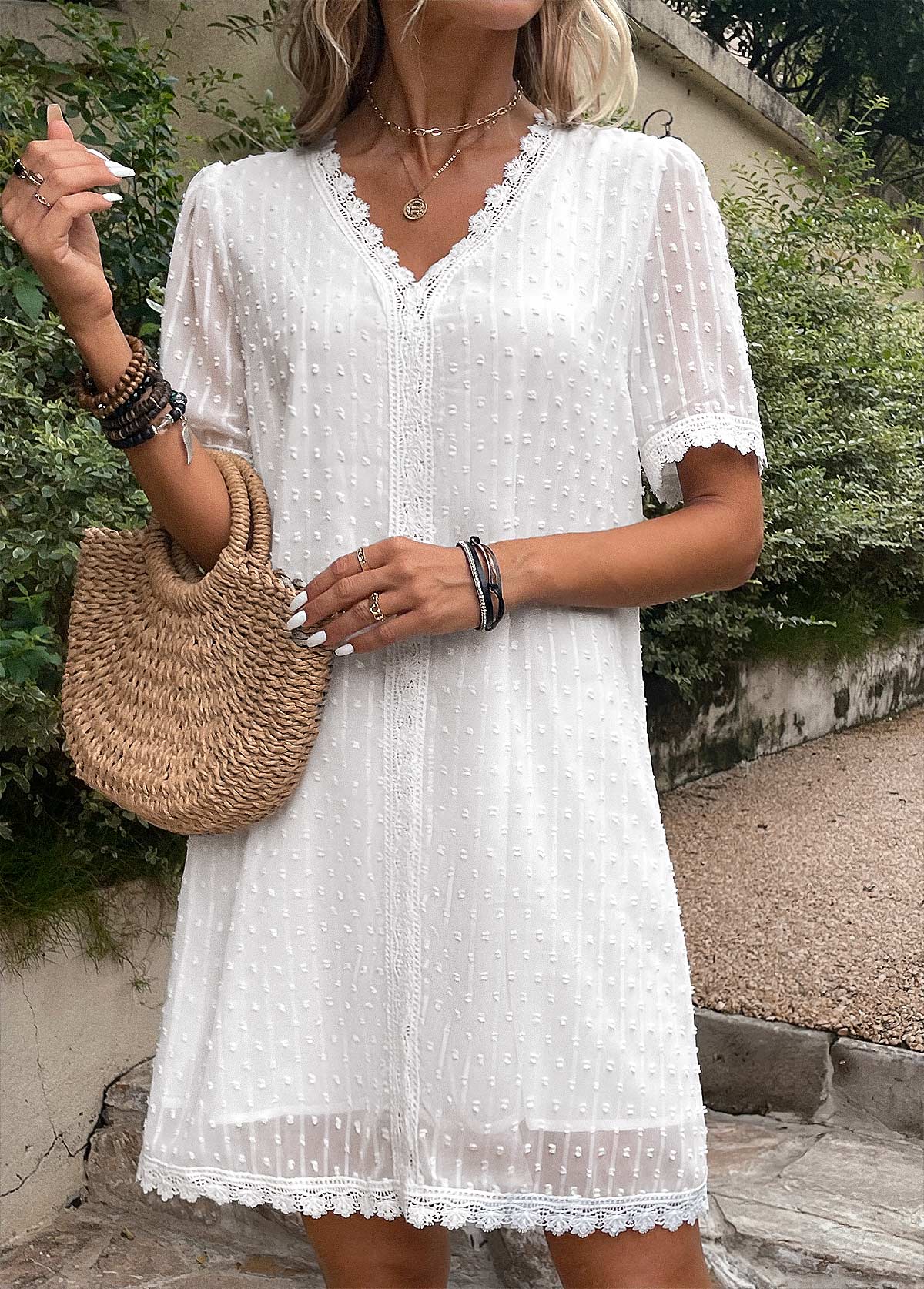 SALE Lace Patchwork White V Neck Shift Dress Rosewe®