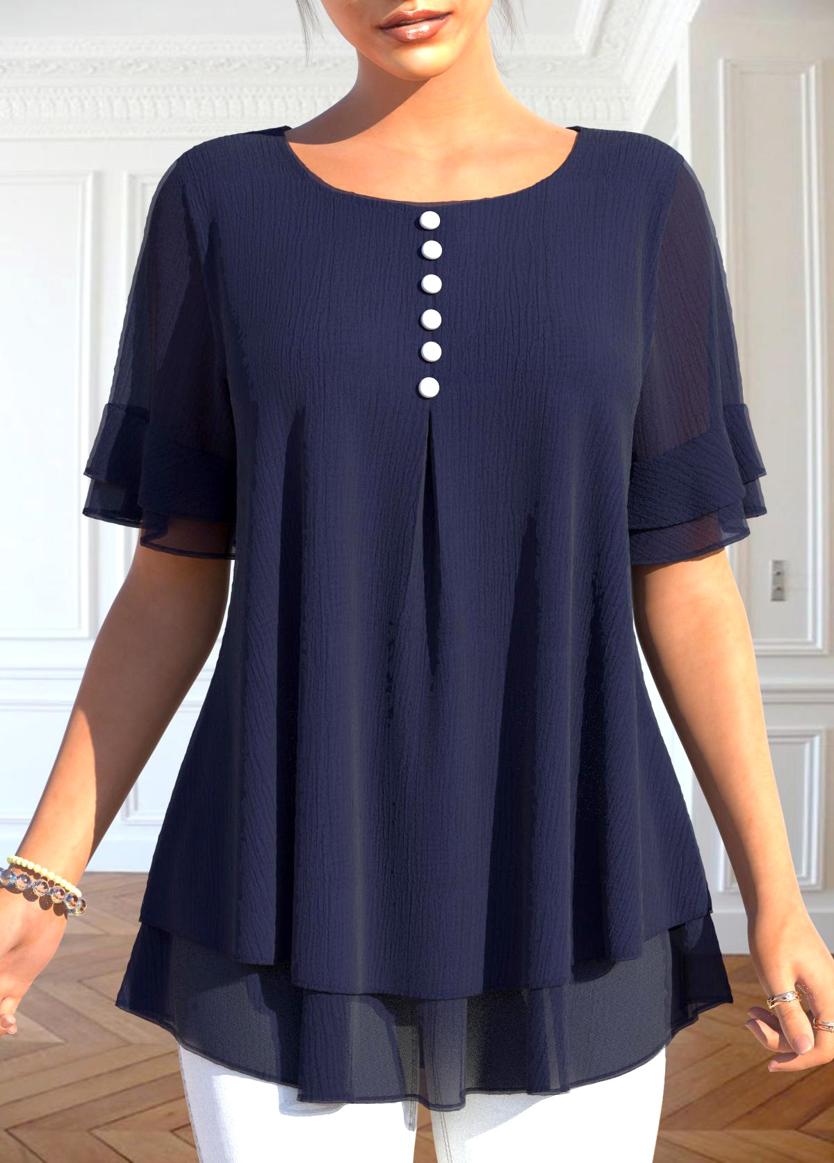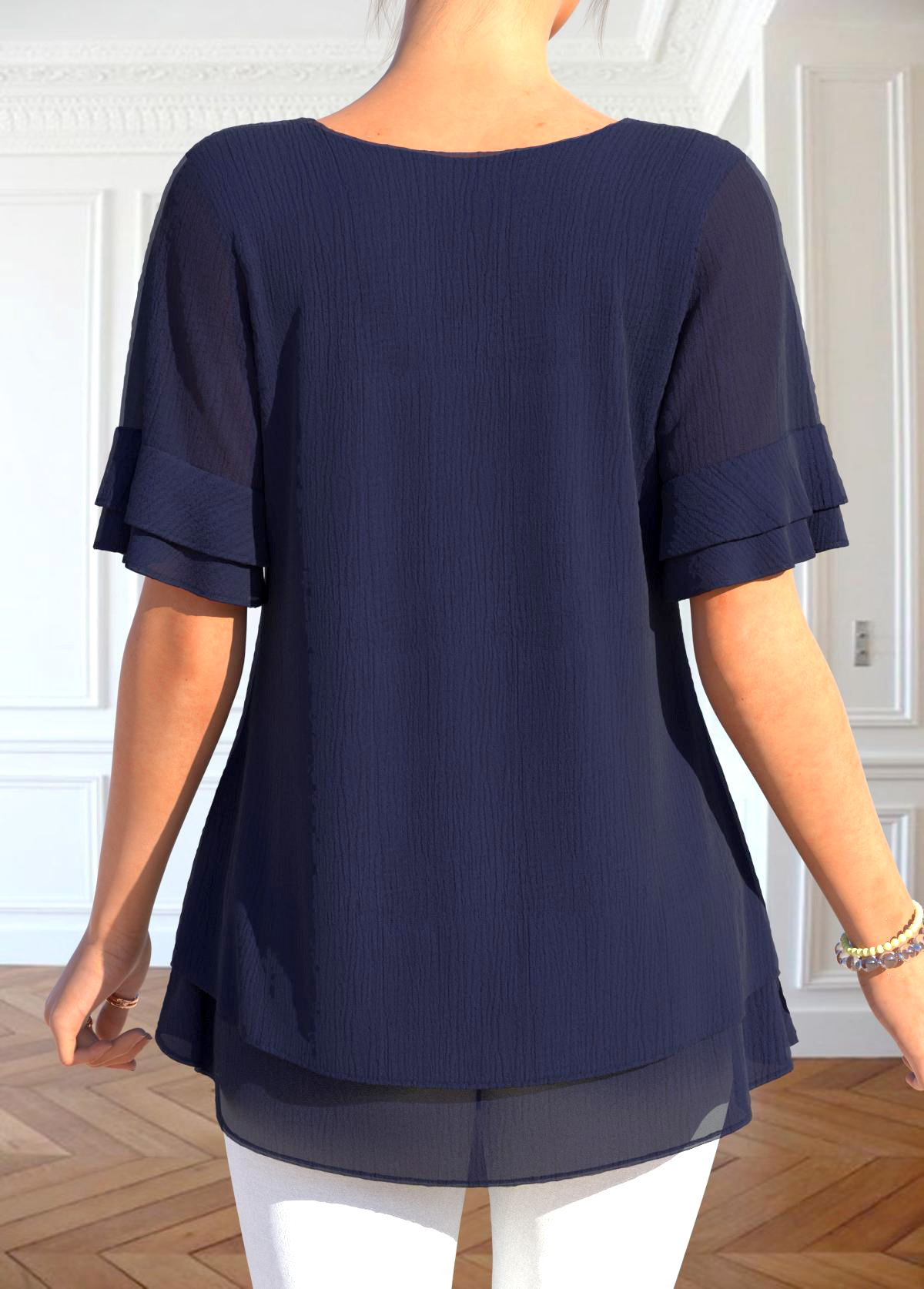 SALE Layered Navy Short Sleeve Fake Two Piece Twinset Rosewe®
