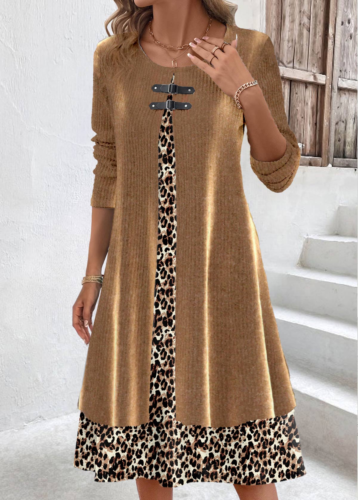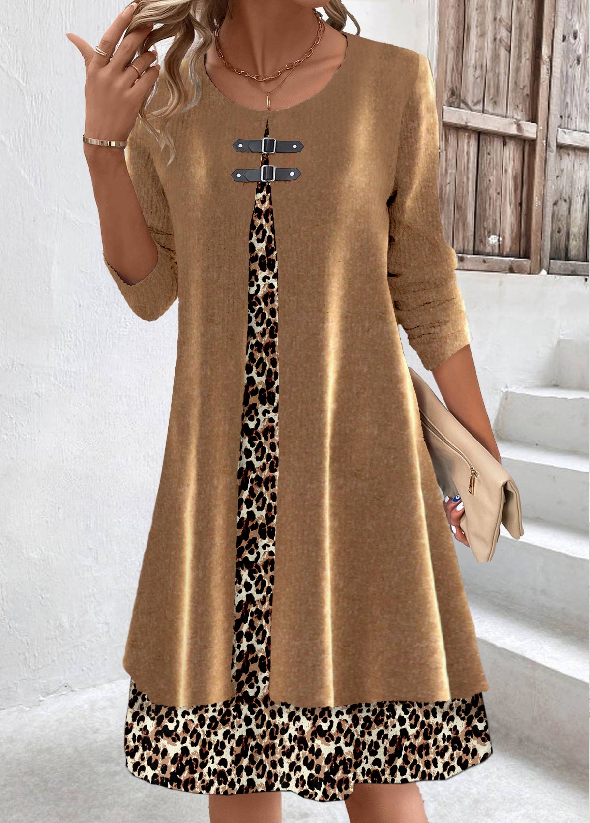 SALE Leopard Fake 2in1 Light Coffee A Line Dress Rosewe®