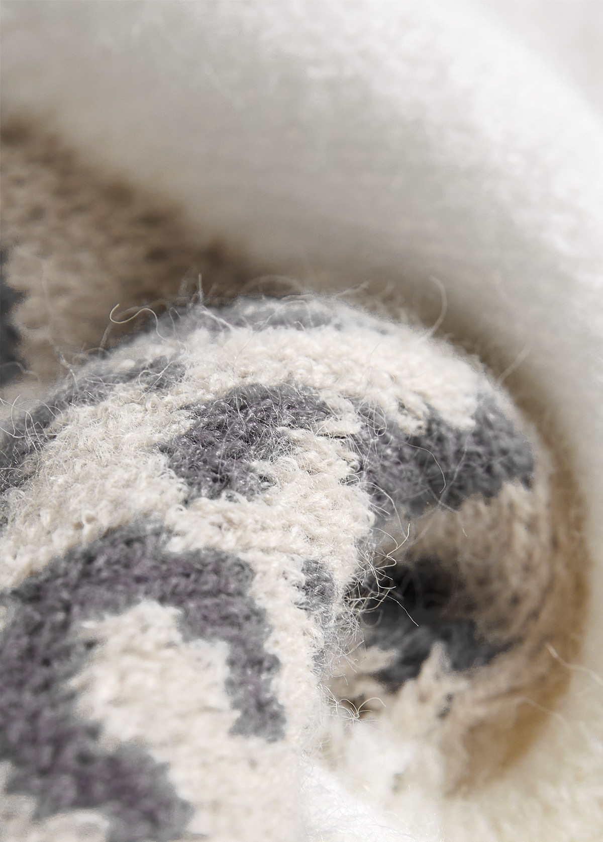 • Leopard Patchwork Light Camel Long Sleeve V Neck Sweater