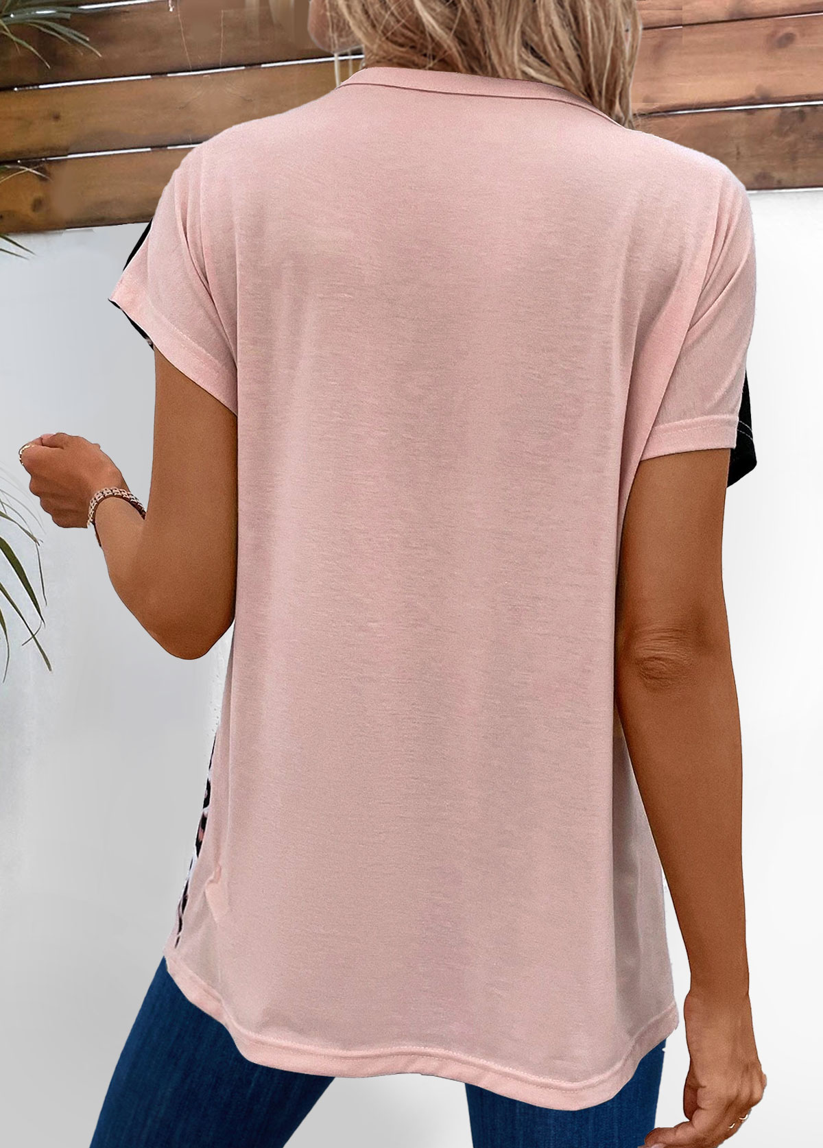 SALE Leopard Patchwork Light Pink Short Sleeve T Shirt Rosewe®
