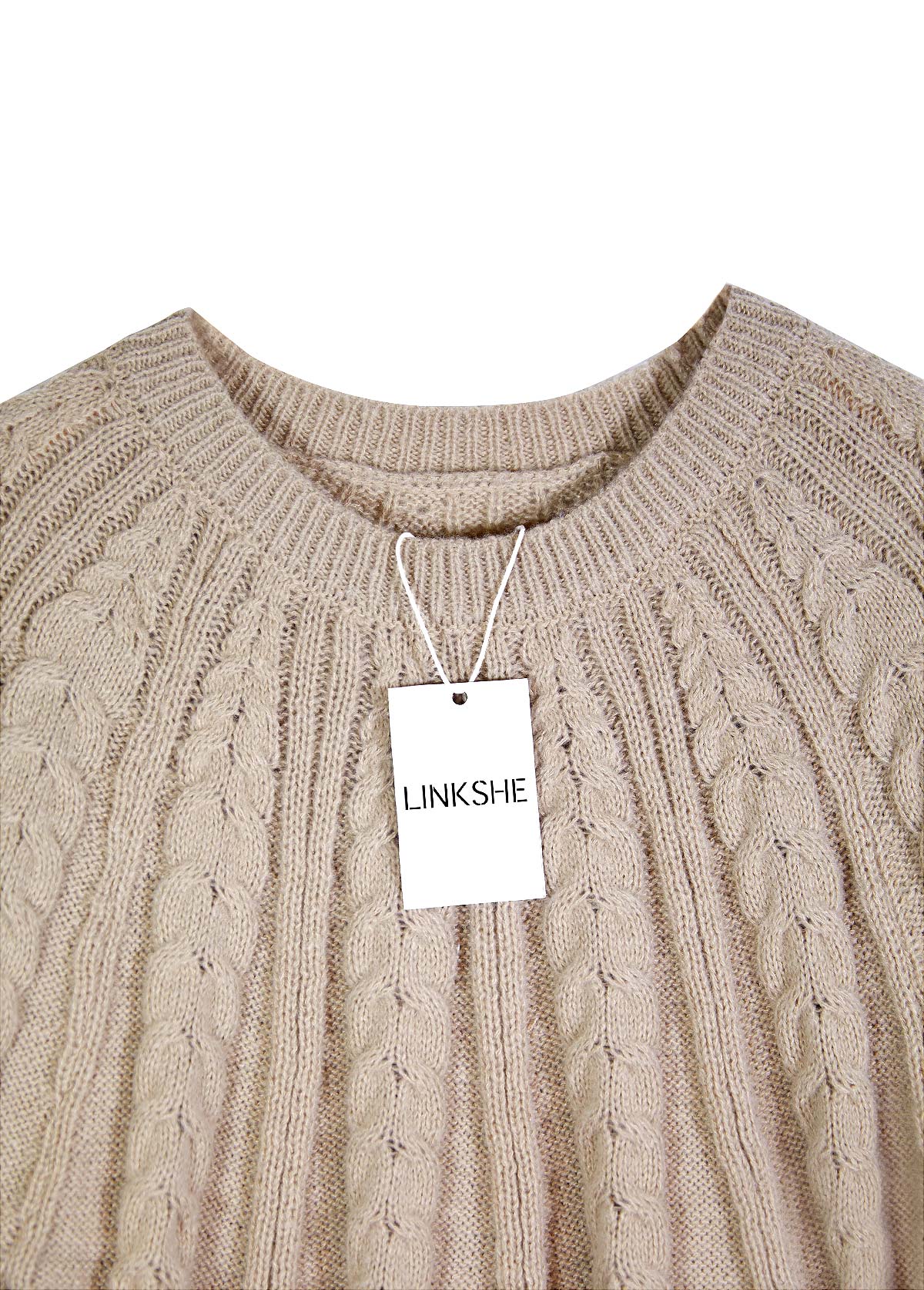 • Light Camel Long Sleeve Round Neck Sweater