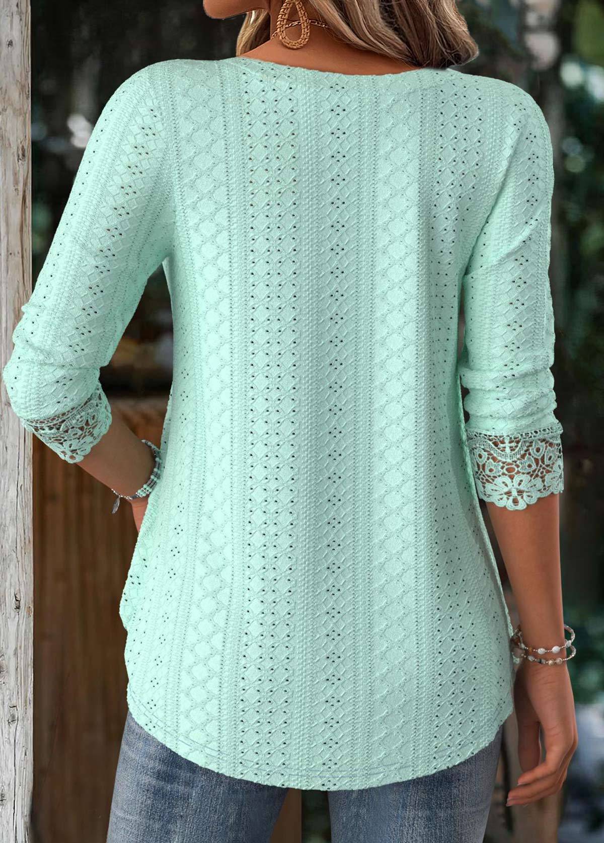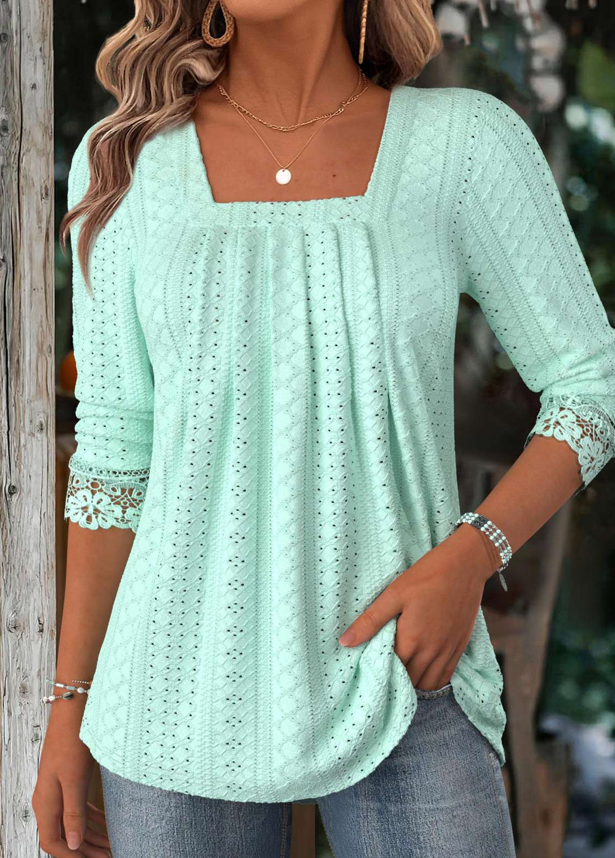 SALE Light Green Long Sleeve Square Neck T Shirt Rosewe®