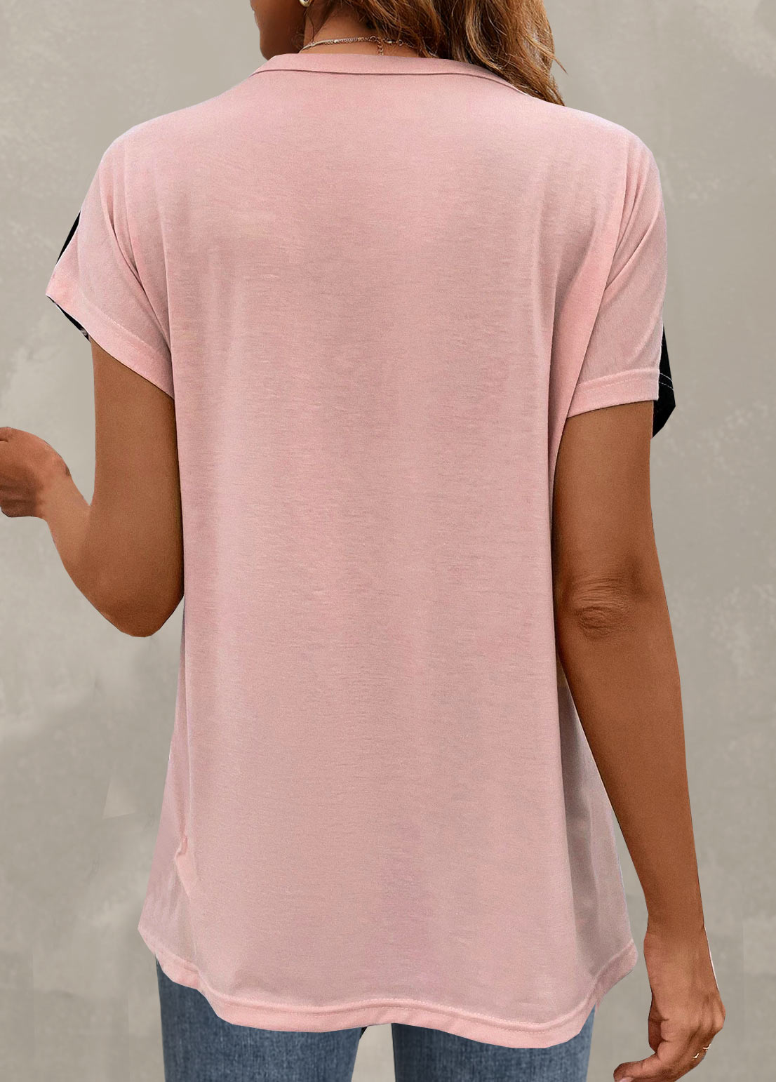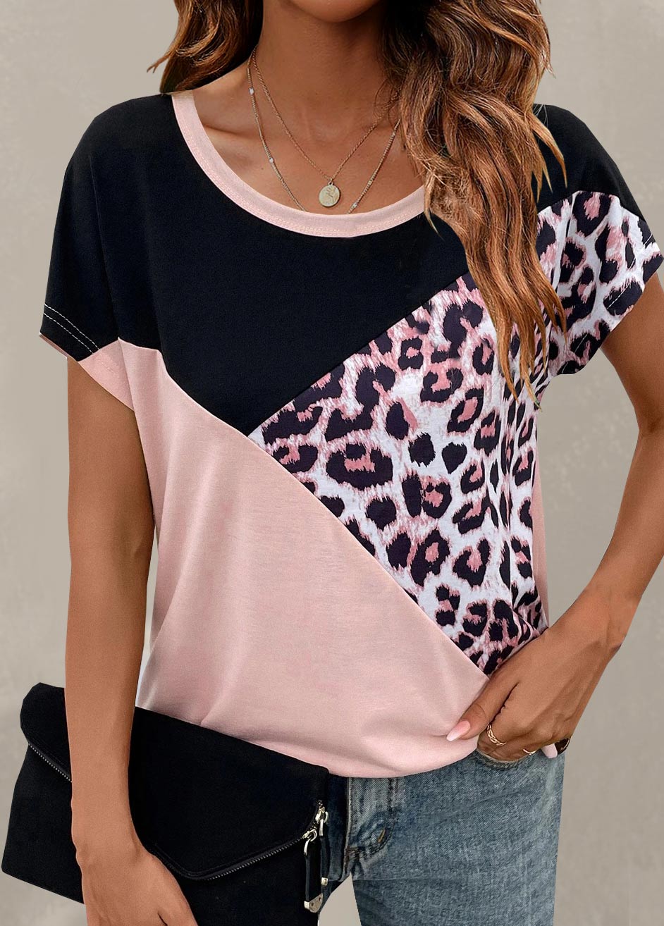 SALE Light Pink Leopard Round Neck T Shirt Rosewe®