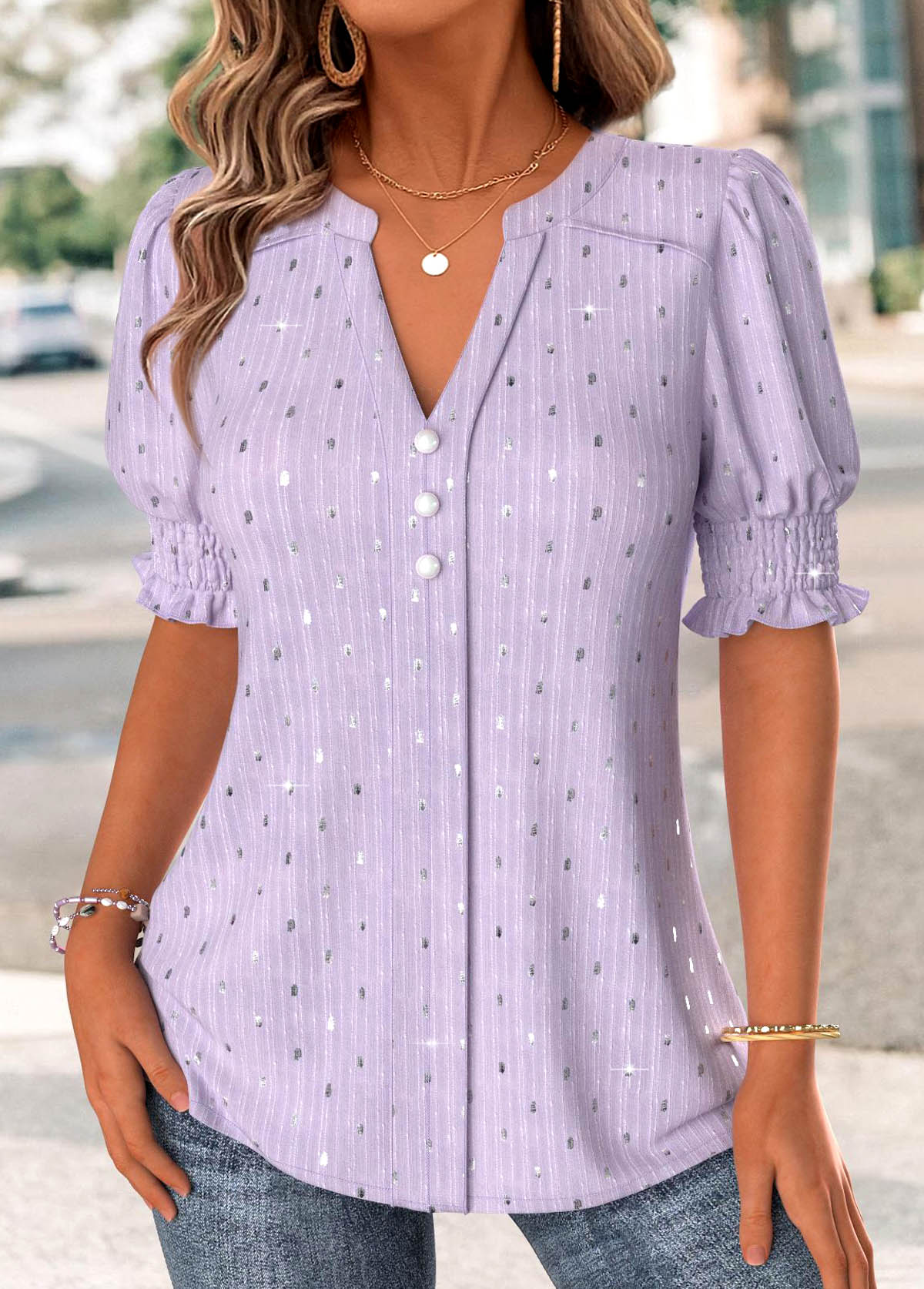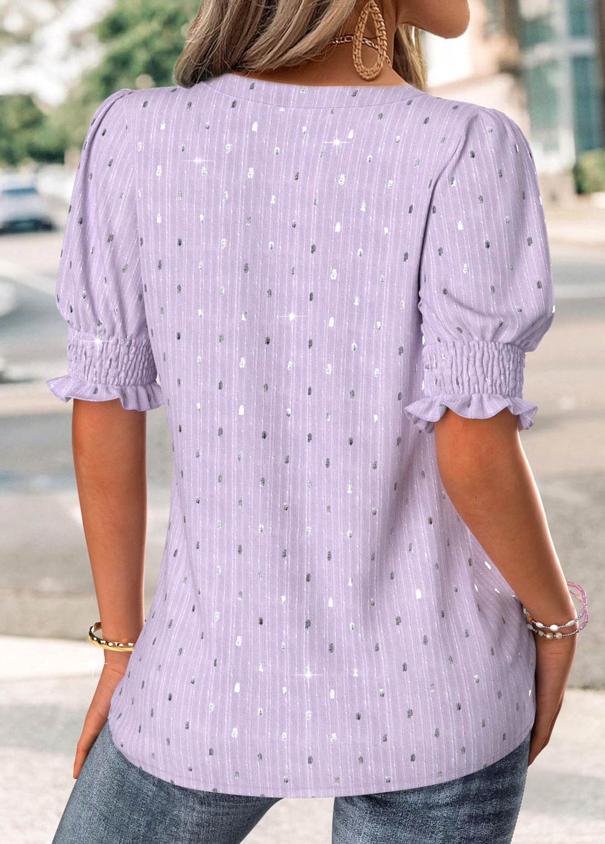 SALE Light Purple Short Sleeve Split Neck Blouse Rosewe®
