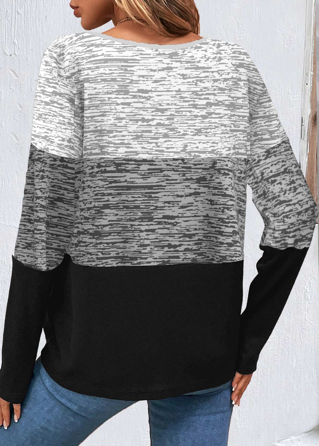 SALE Long Sleeve Patchwork Grey Round Neck Sweatshirt Rosewe®