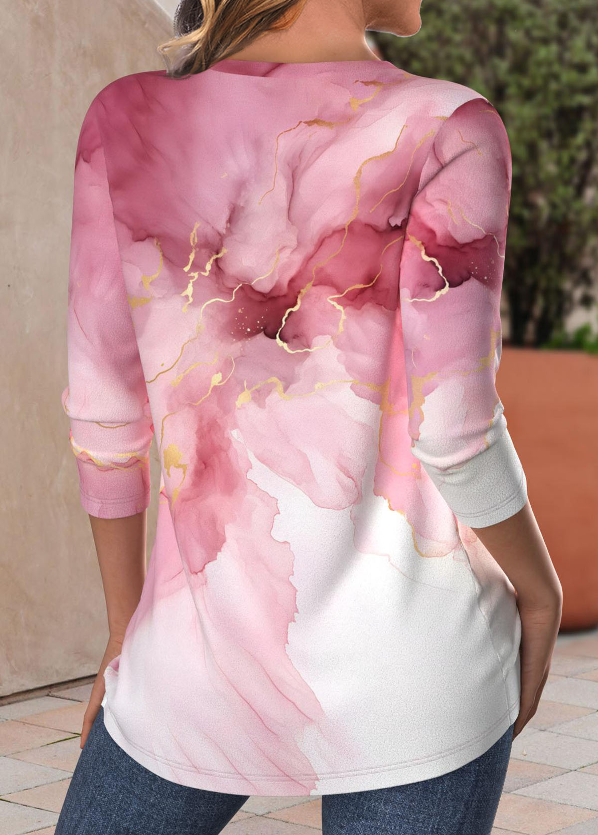 SALE Marble Print Criss Cross Pink Long Sleeve T Shirt Rosewe®