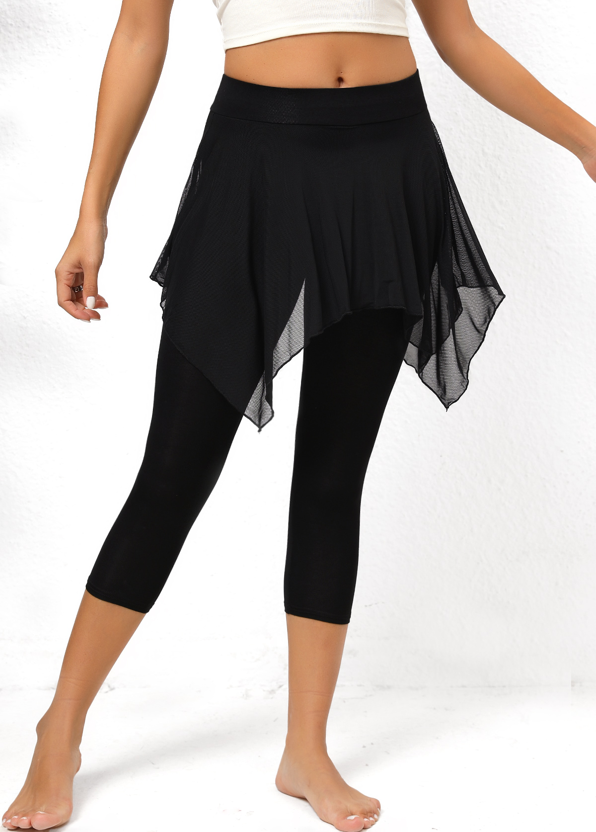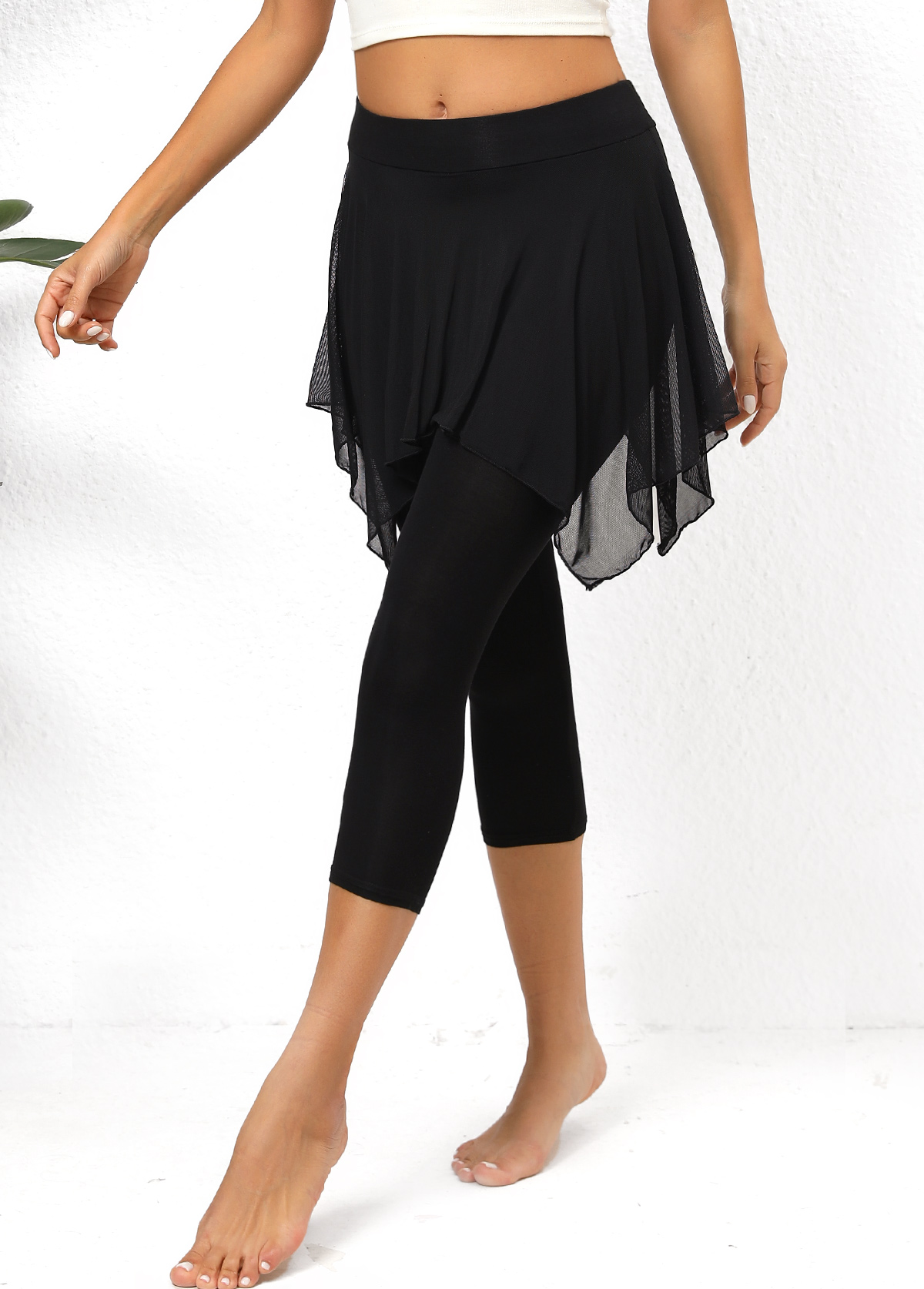 • Mesh Black Elastic Waist High Waisted Skinny Pants