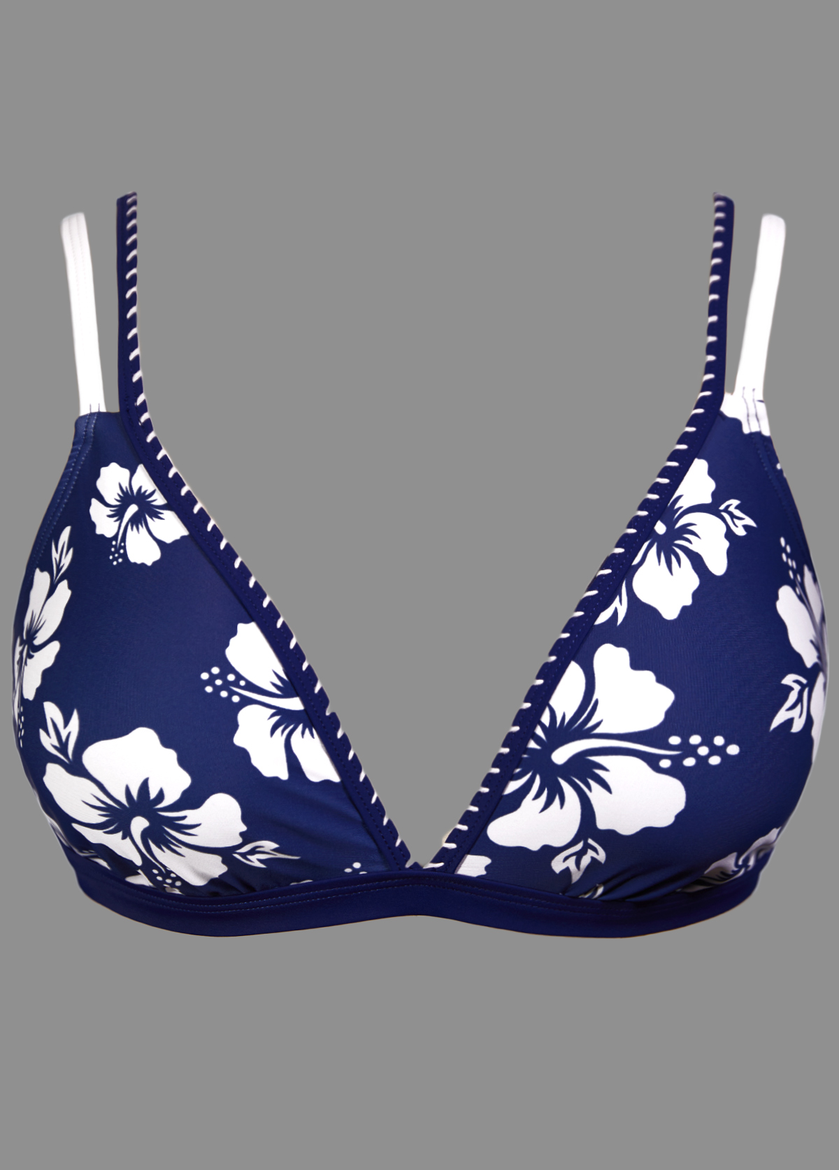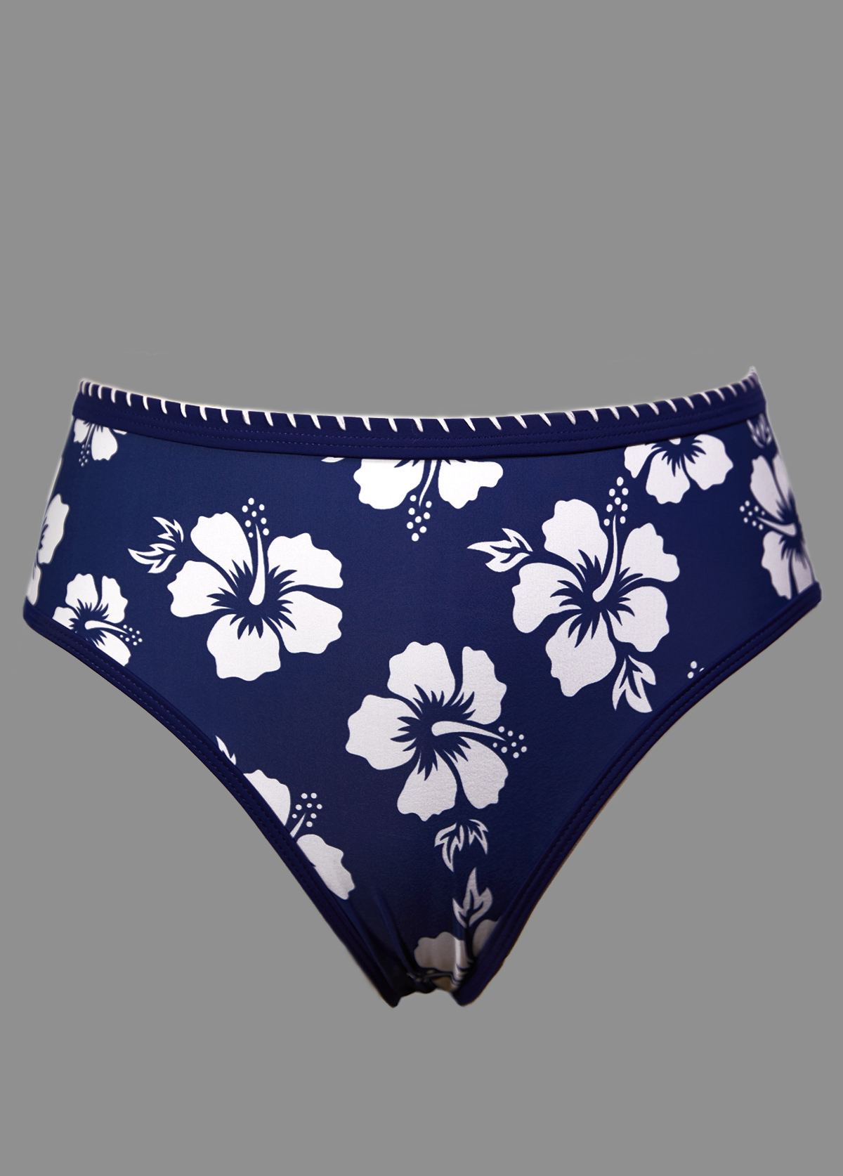 • Mid Waisted Floral Print Contrast Binding Navy Bikini Set