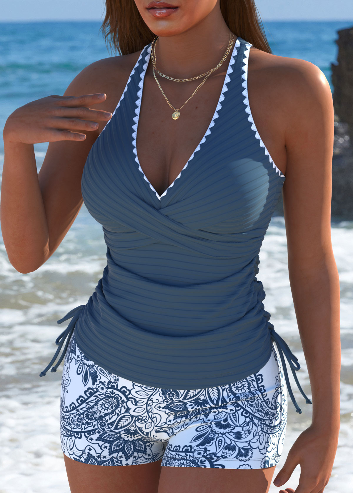 SALE Mid Waisted Paisley Print Dusty Blue Tankini Set Rosewe®