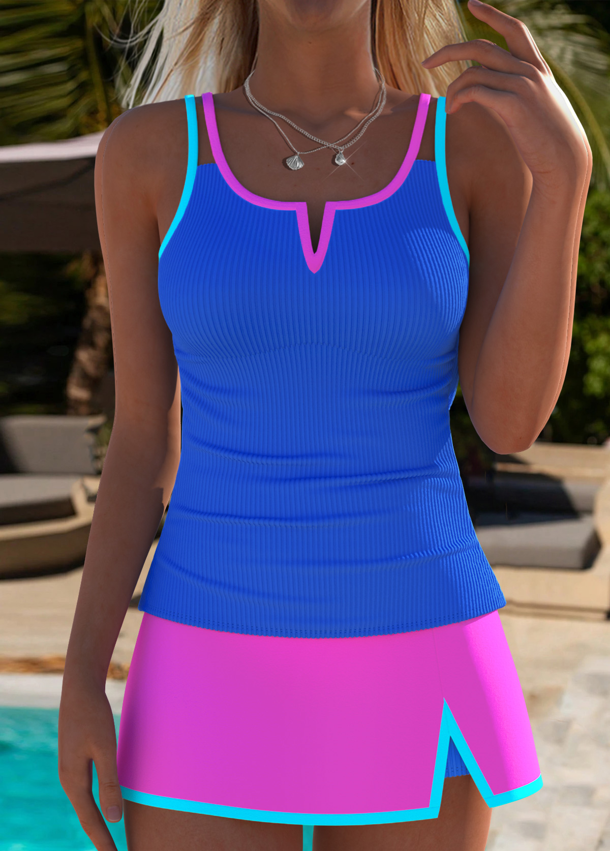 Mid Waisted Purplish Blue Tankini Set Rosewe®