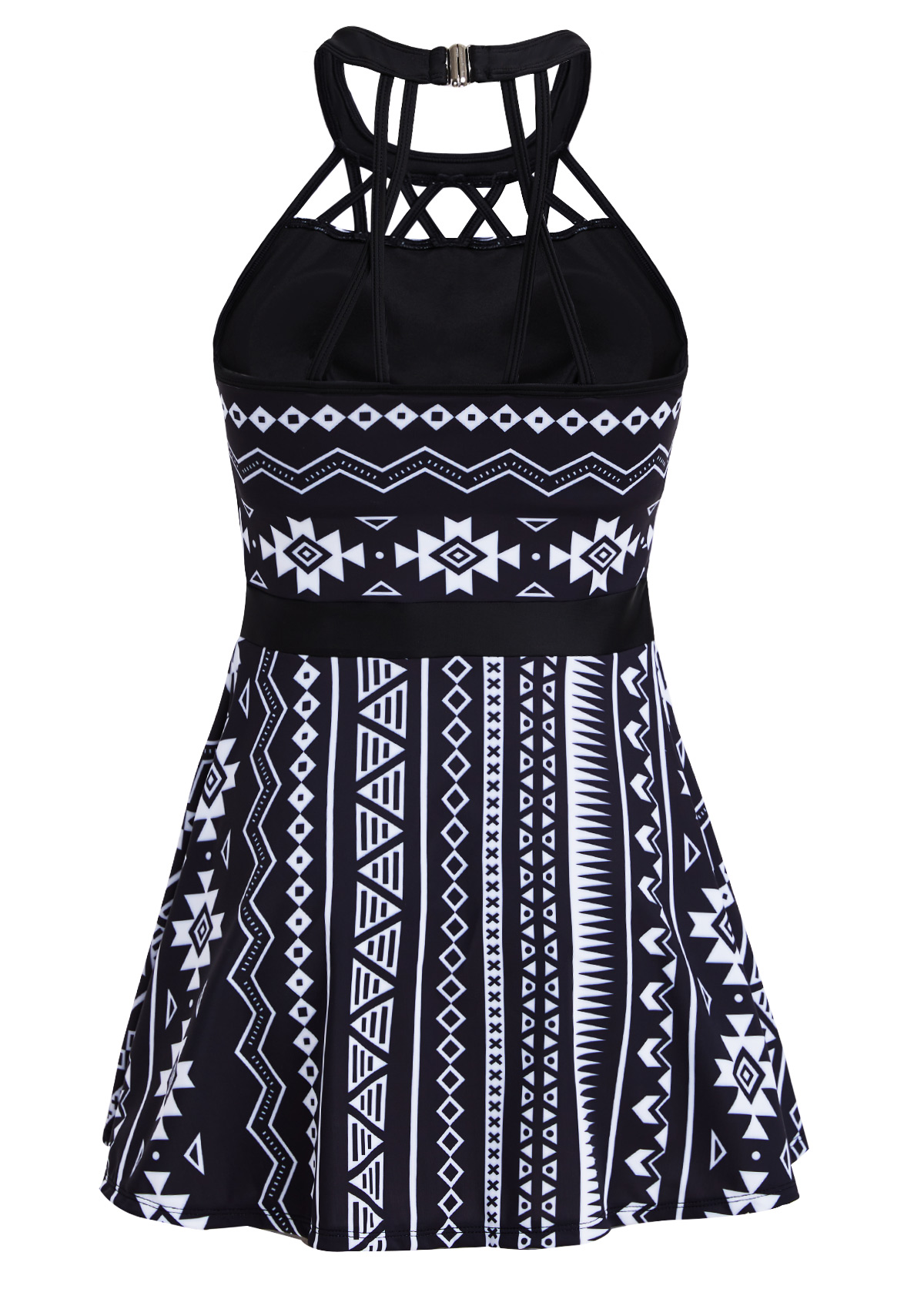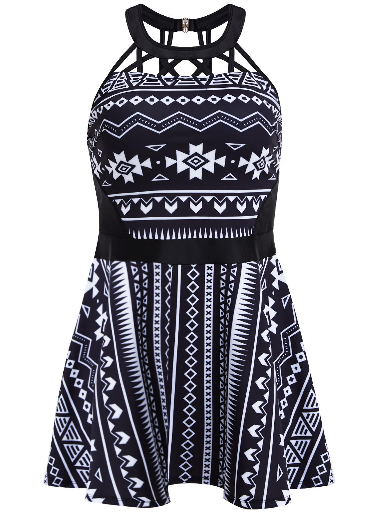 Mid Waisted Tribal Print Cage Neck Swimdress and Panty