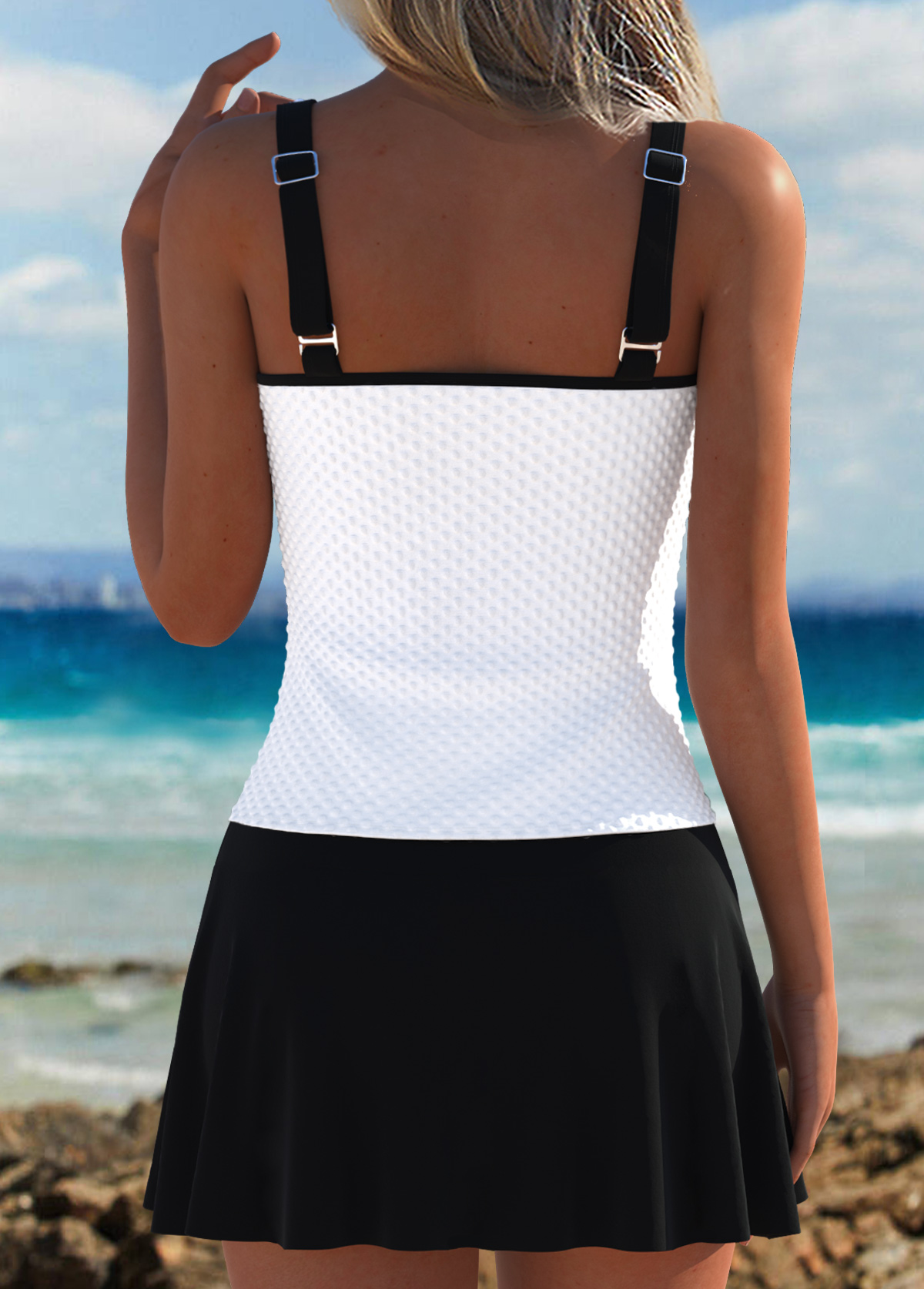 SALE Mid Waisted White V-Neck Tankini Set Rosewe®