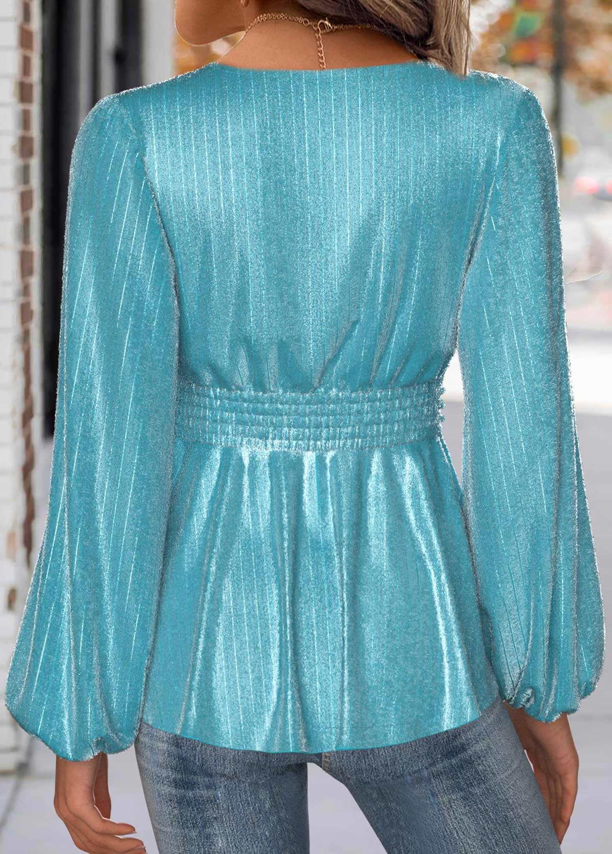 SALE Mint Green Long Sleeve V Neck Blouse Rosewe®