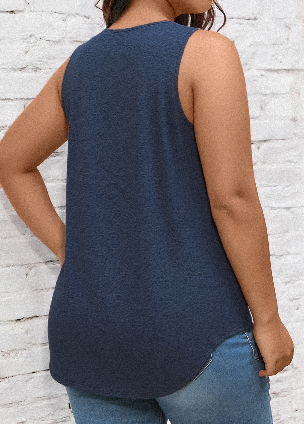 Navy Sleeveless V Neck Tank Top Rosewe®