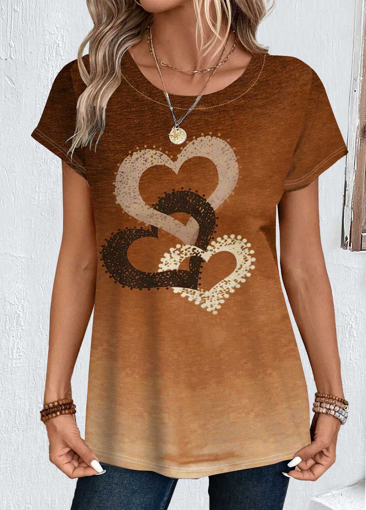 SALE Ombre Dark Coffee Short Sleeve Round Neck T Shirt Rosewe®