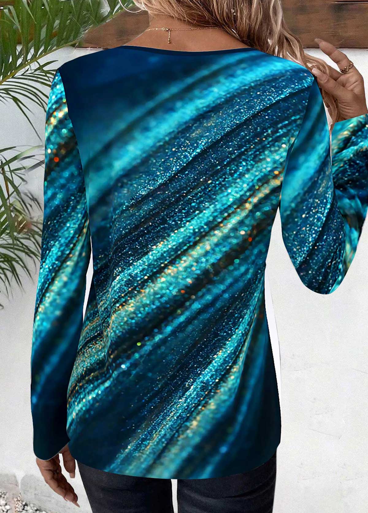 Ombre Lace Up Peacock Blue Long Sleeve T Shirt