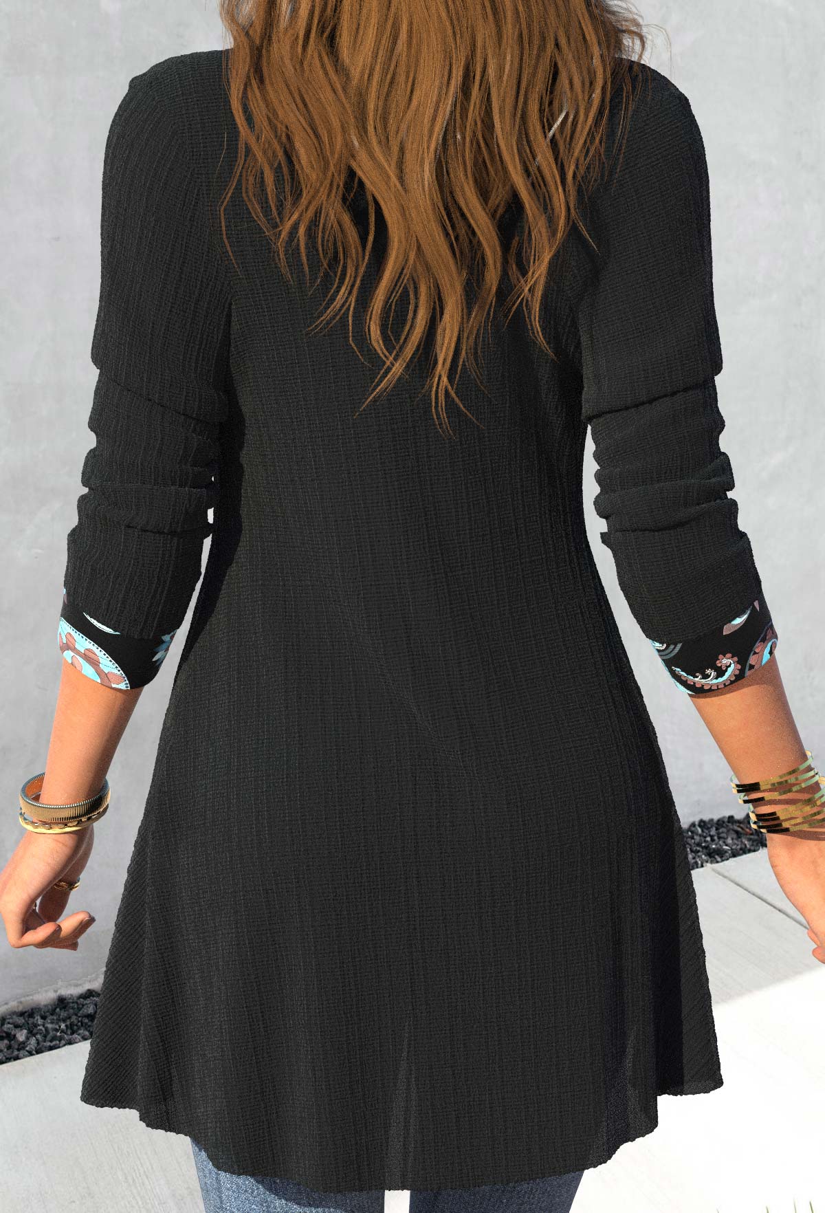 • Paisley Print Black Long Sleeve Fake Two Piece Twinset