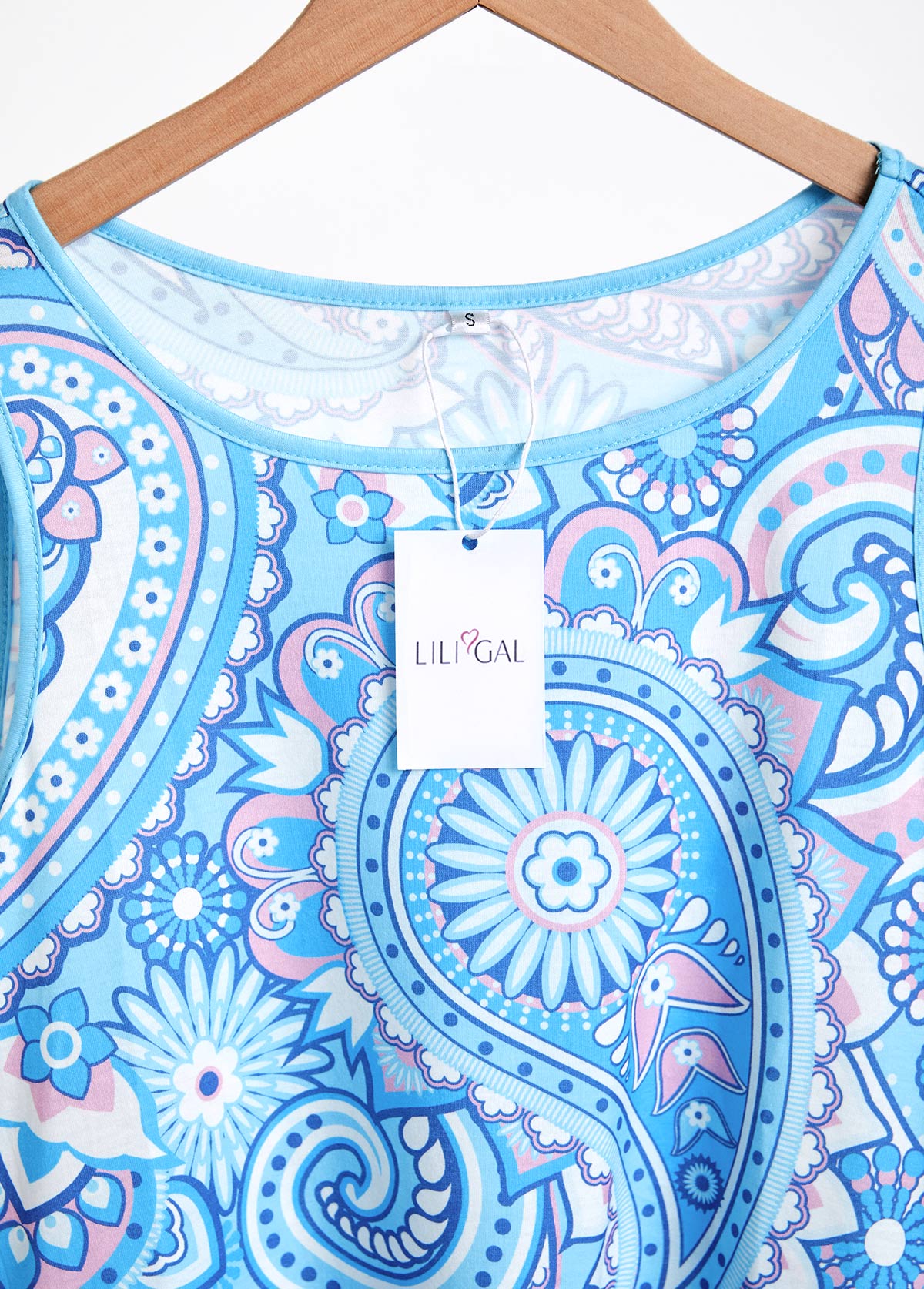 Paisley Print Drawstring Light Blue Short Sleeveless Dress Rosewe®