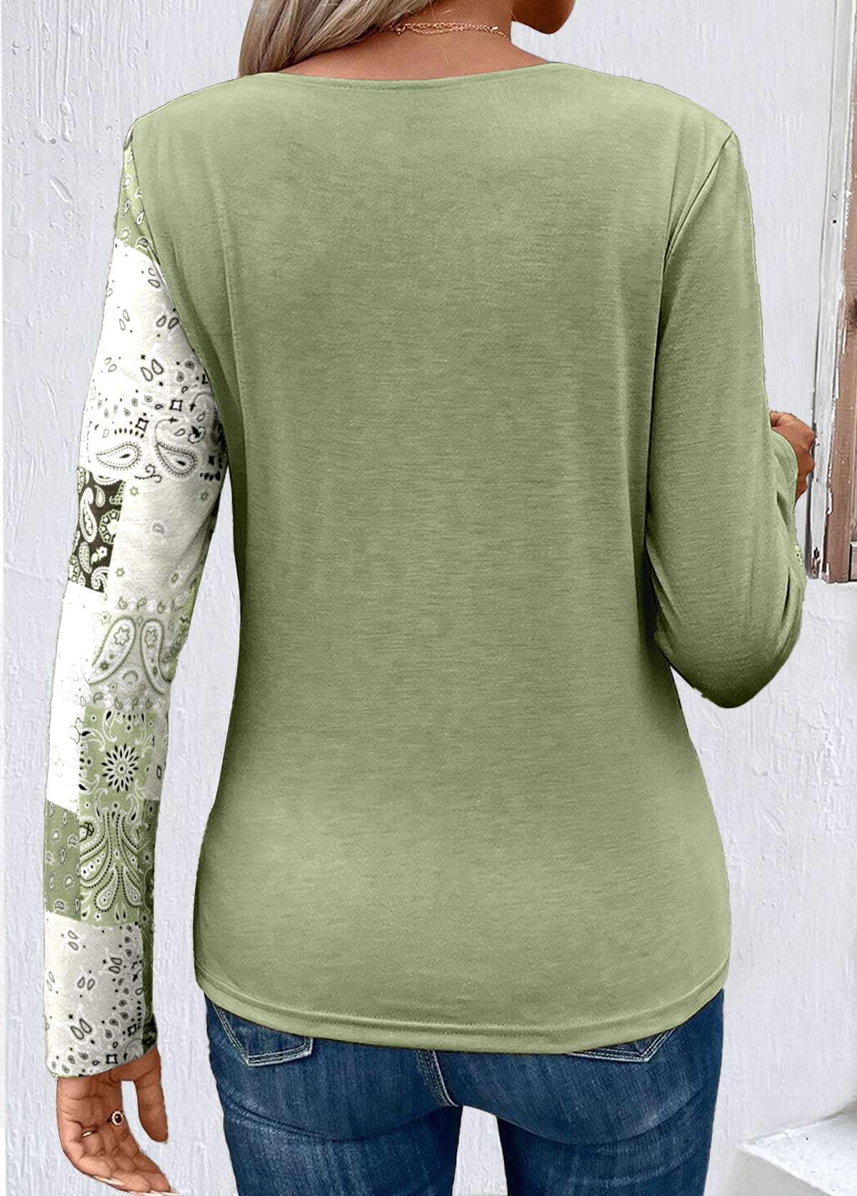 SALE Patchwork Asymmetry Light Green Scoop Neck T Shirt Rosewe®