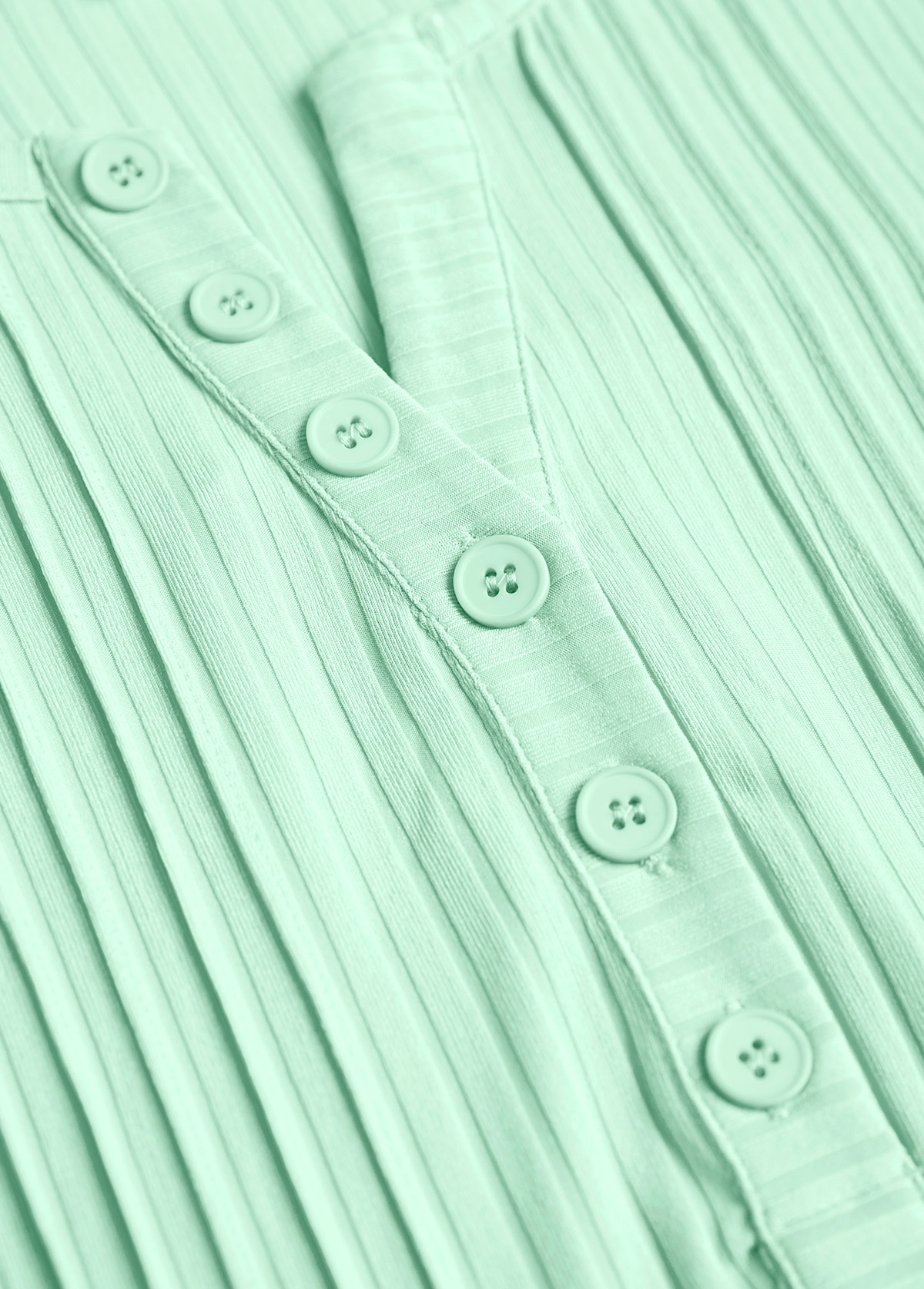 Patchwork Light Green Long Sleeve Split Neck T Shirt