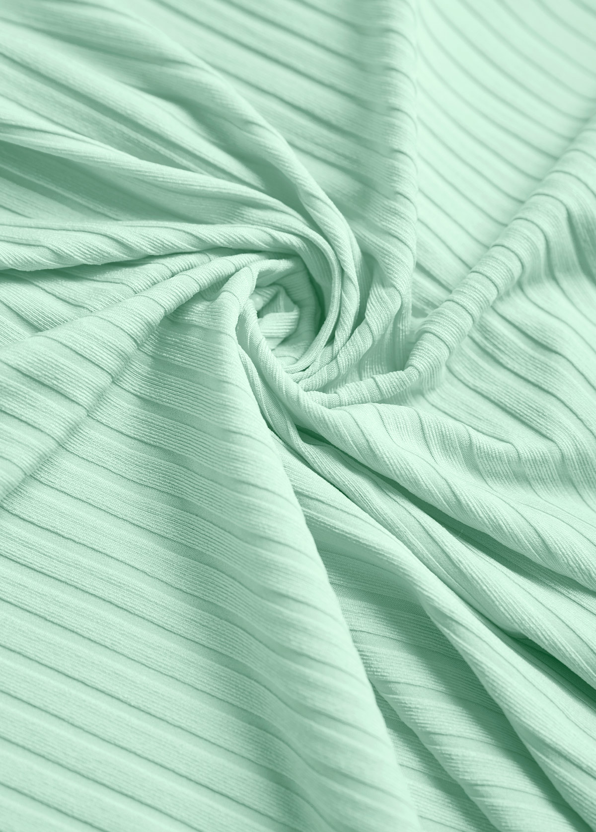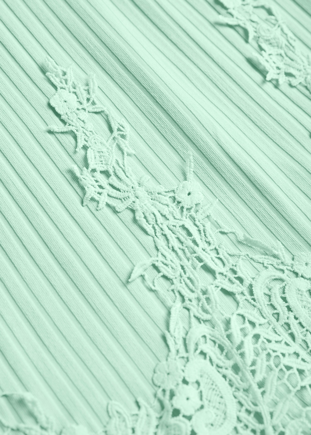 • Patchwork Light Green Long Sleeve Split Neck T Shirt