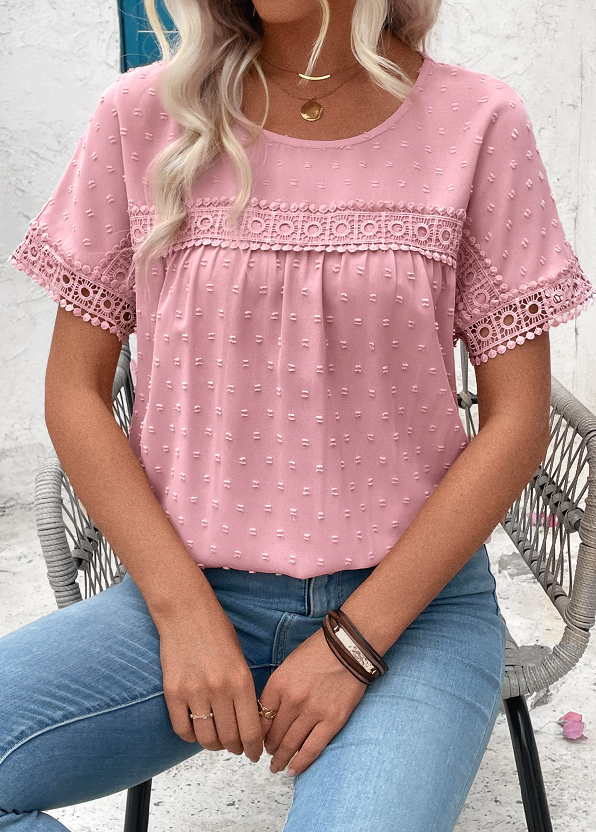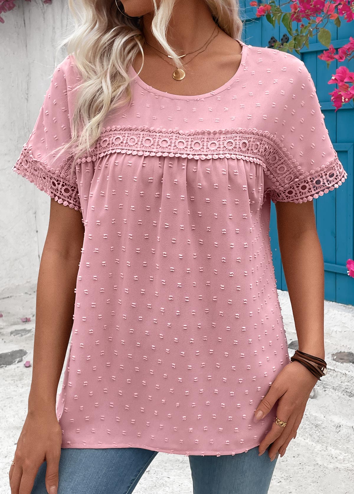 SALE Patchwork Light Pink Short Sleeve Round Neck T Shirt Rosewe®
