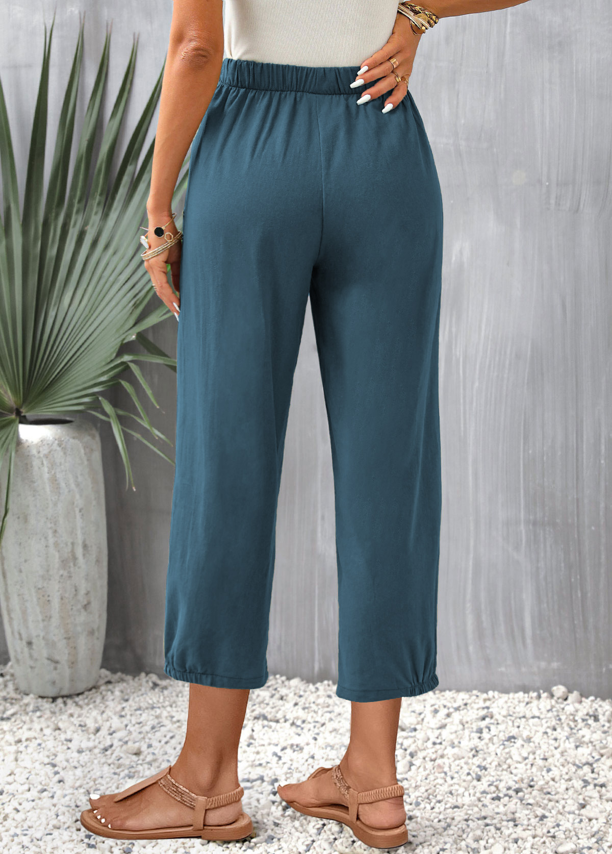 Peacock Blue Elastic Waist Pocket Pants Rosewe®