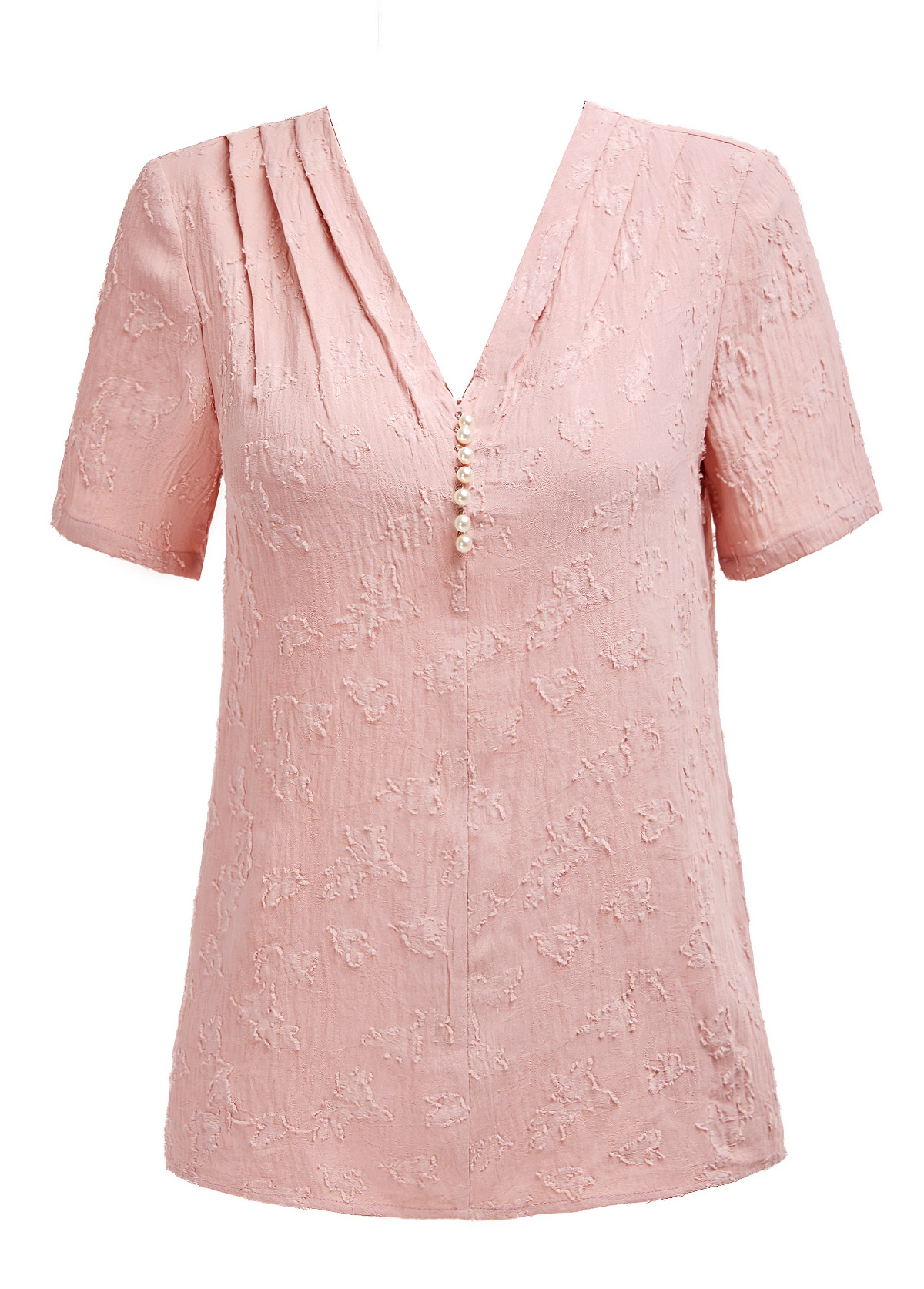 SALE Pearl Pink Short Sleeve V Neck Blouse Rosewe®