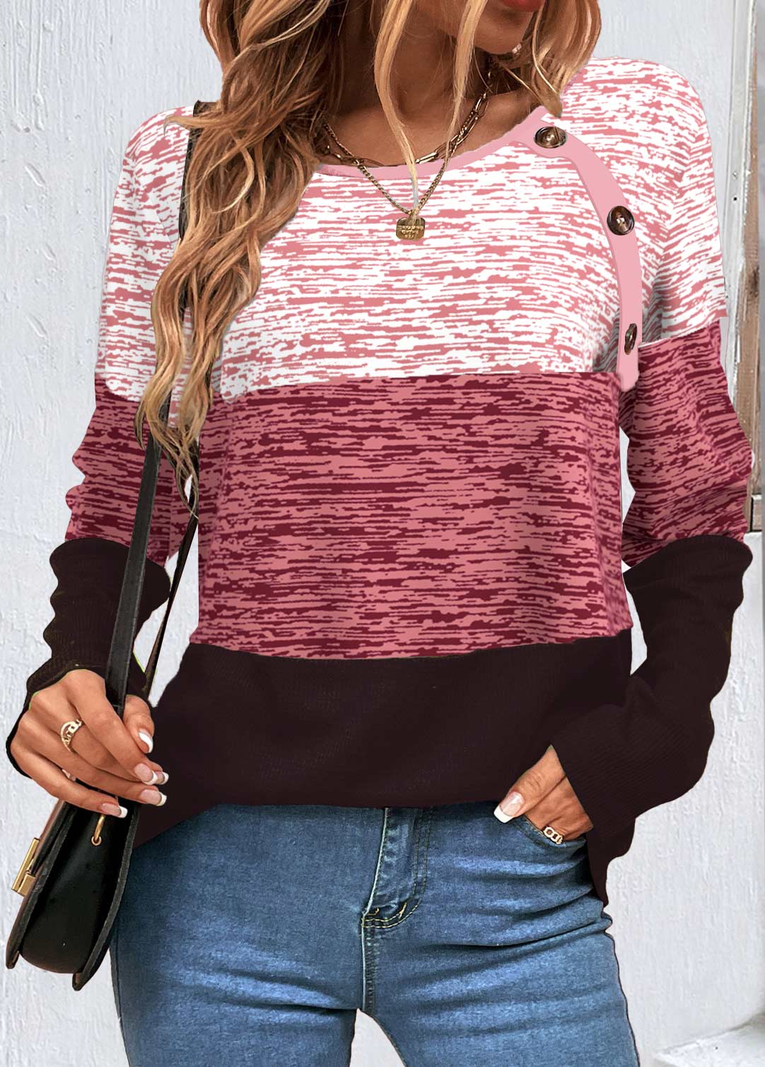 SALE Pink Round Neck Long Sleeve Patchwork Sweatshirt Rosewe®