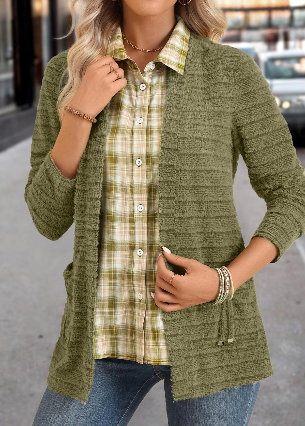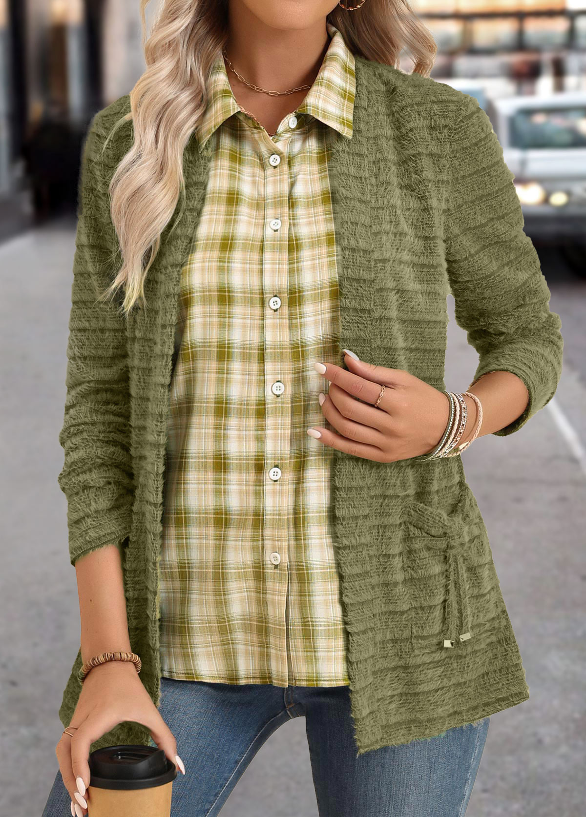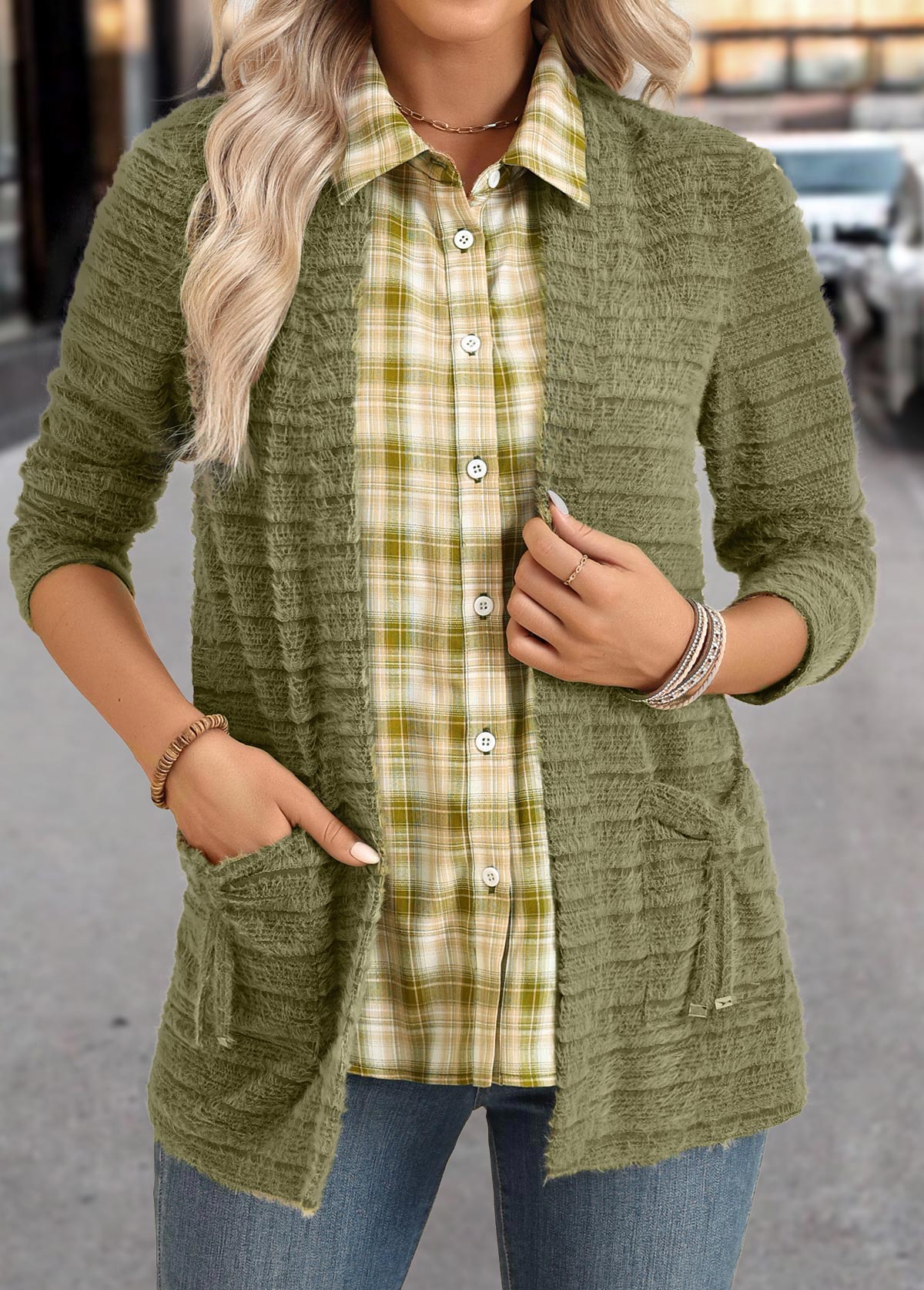 Plaid Avocado Green Long Sleeve Fake Two Piece Twinset Rosewe®