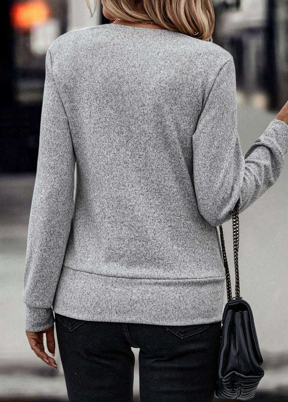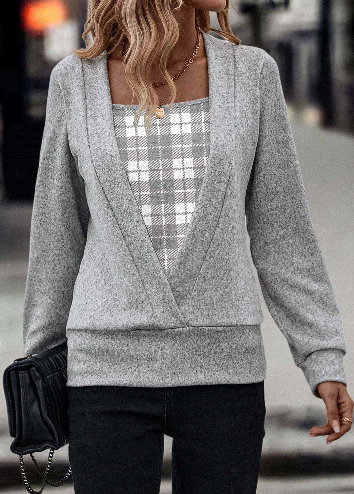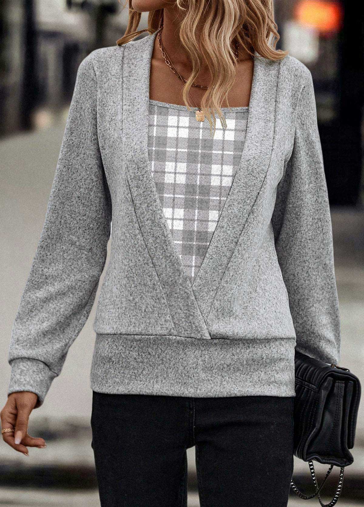 SALE Plaid Fake 2in1 Light Grey Marl Long Sleeve Sweatshirt Rosewe®