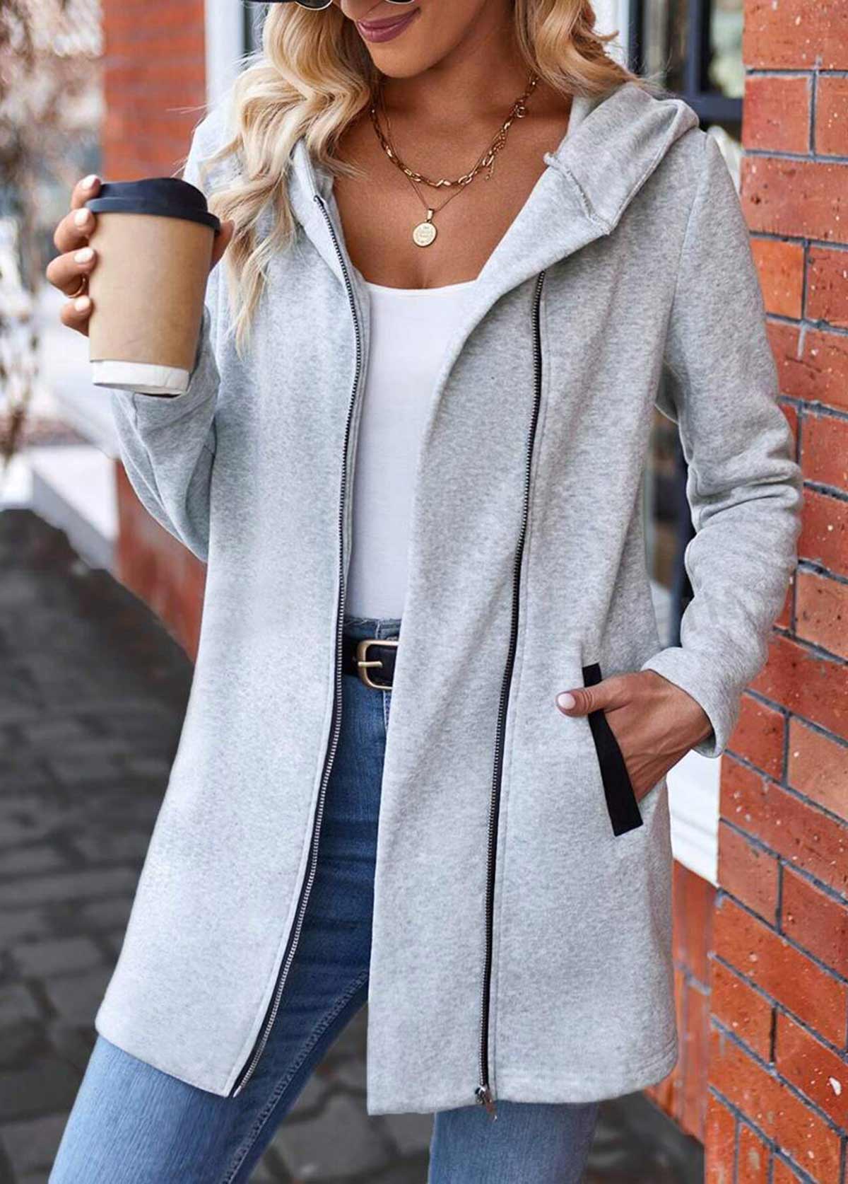 SALE Plaid Zipper Light Grey Long Sleeve Sweatshirt Rosewe®