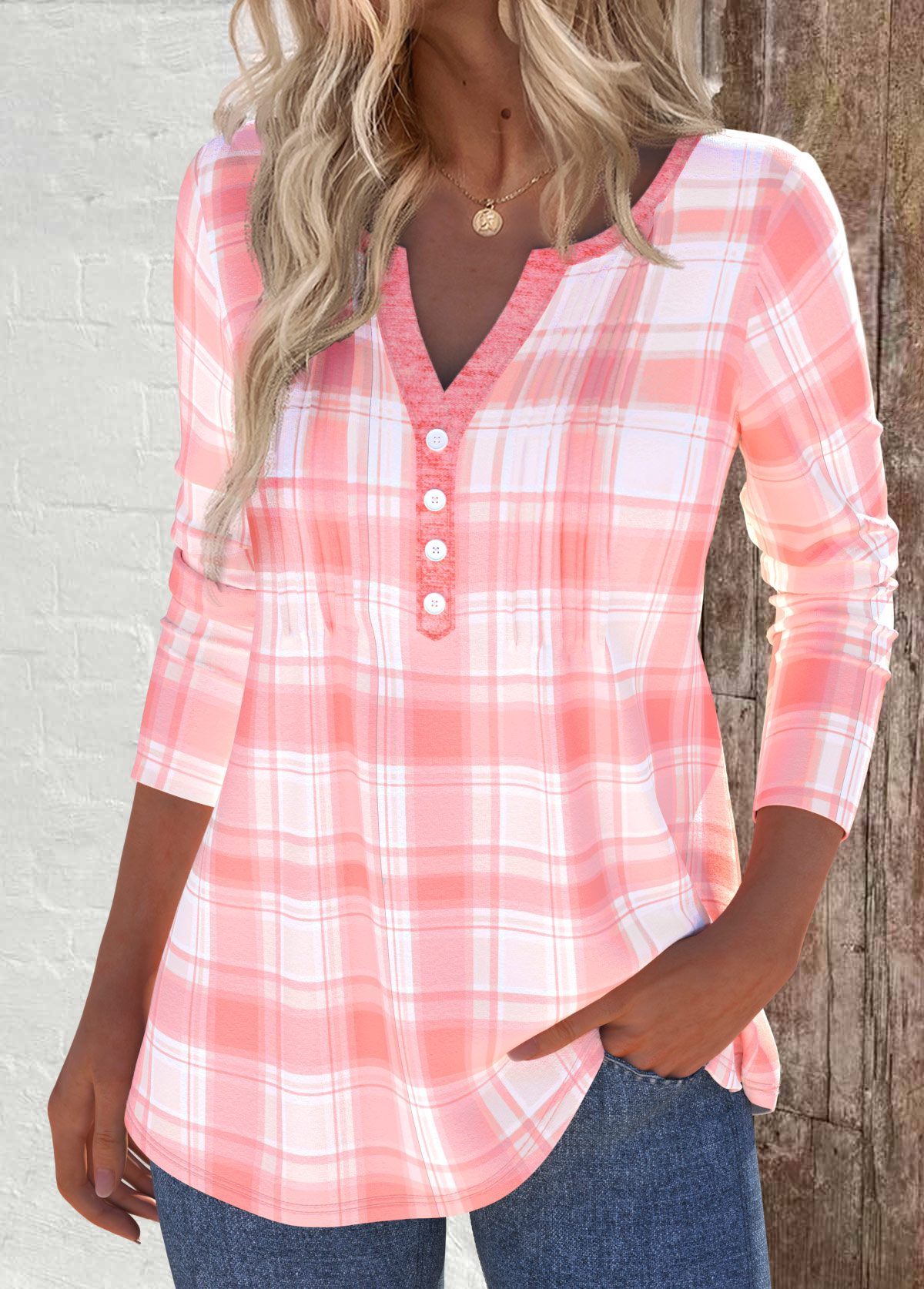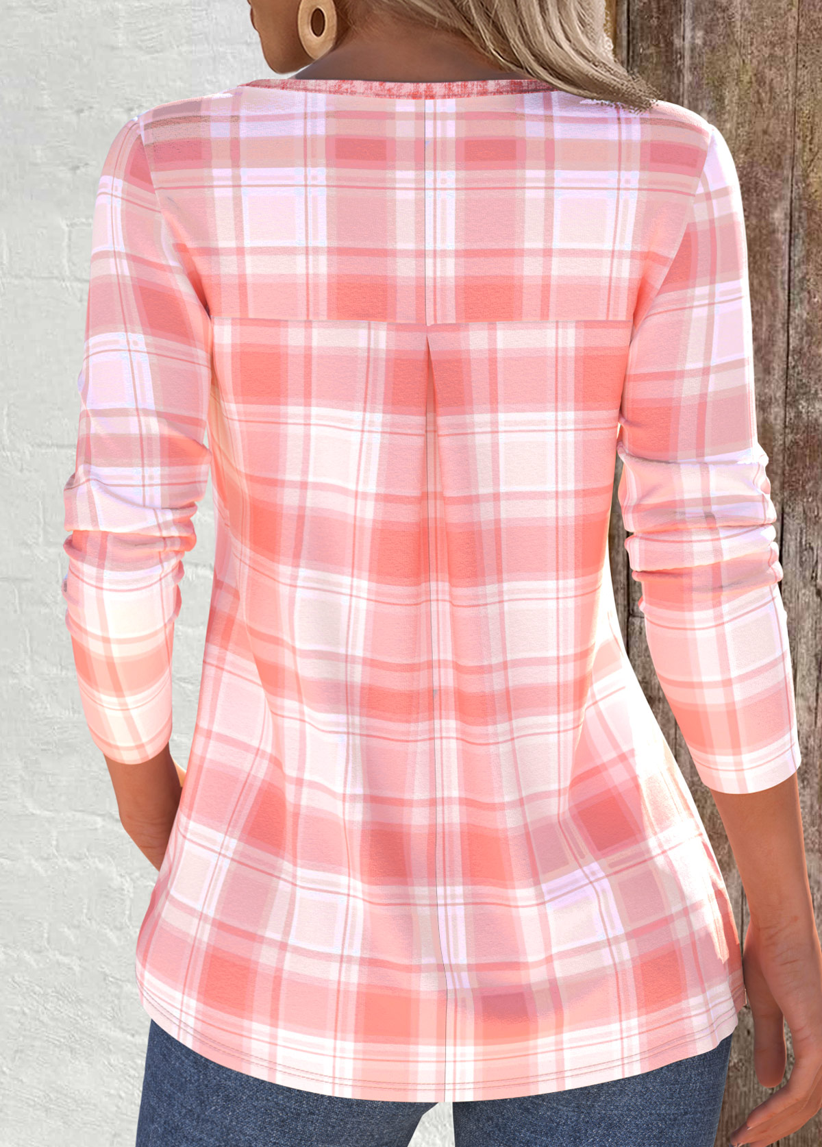 SALE Plaid Tuck Stitch Dusty Pink Long Sleeve T Shirt Rosewe®