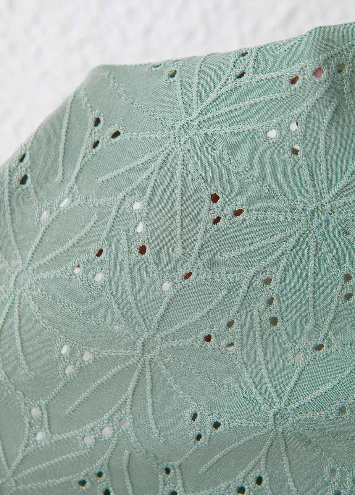 • Pleated Sage Green Short Sleeve Square Neck T Shirt