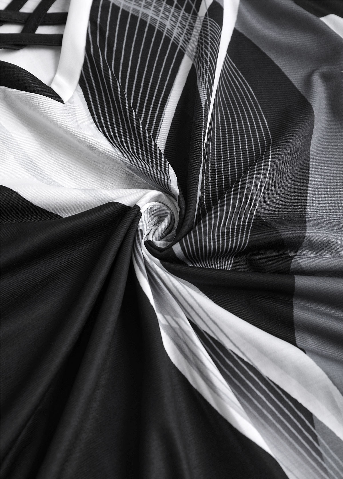 SALE Plus Size Black Criss Cross Geometric Print T Shirt Rosewe®