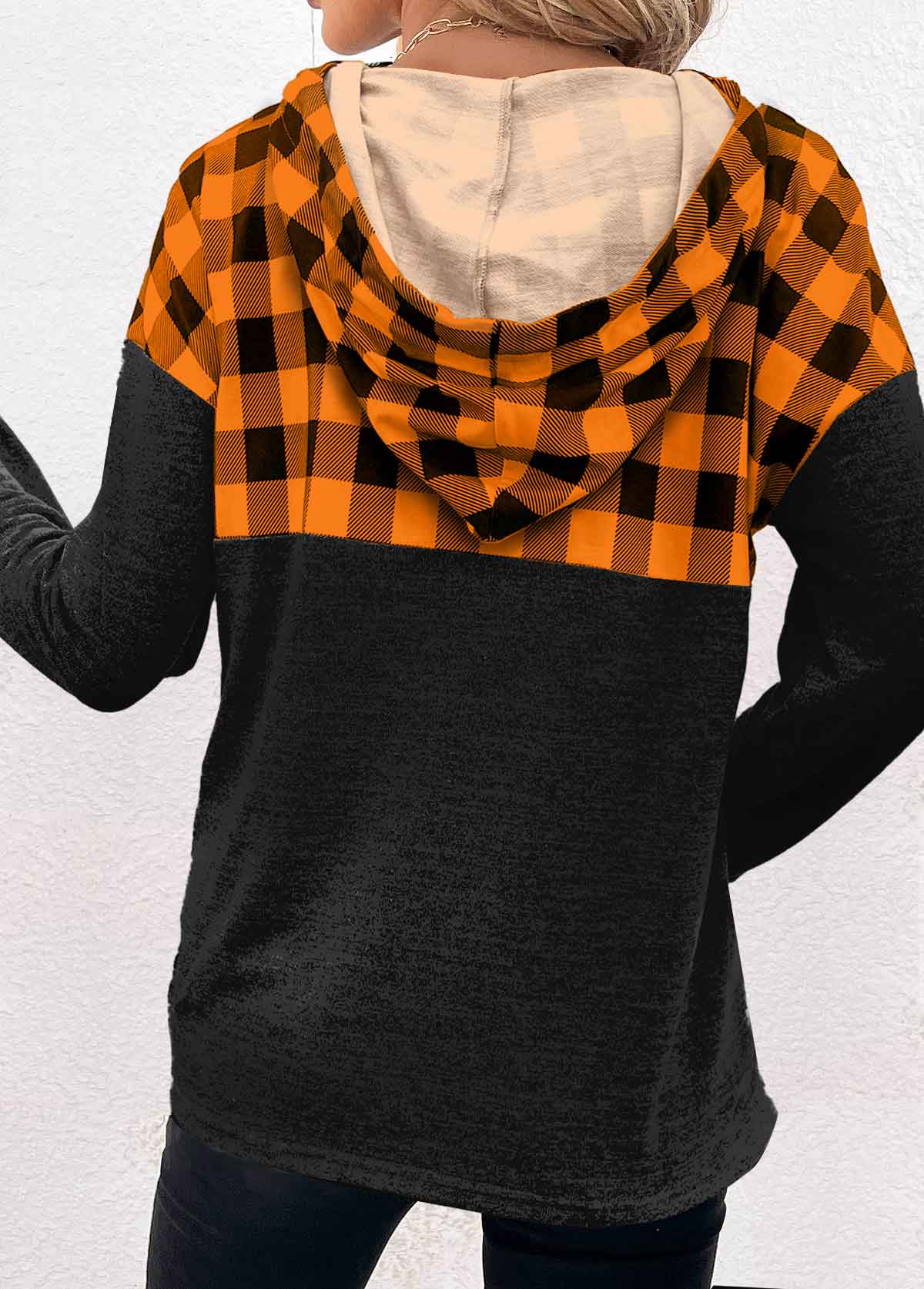 • Pocket Black Long Sleeve Patchwork Hoodie