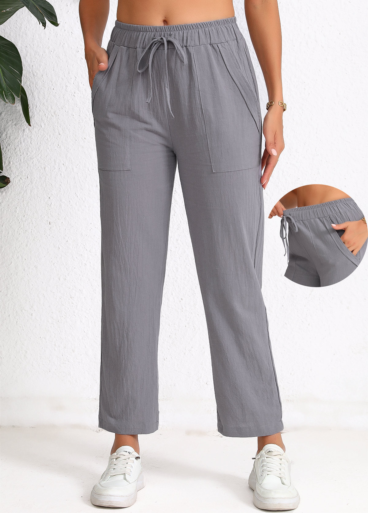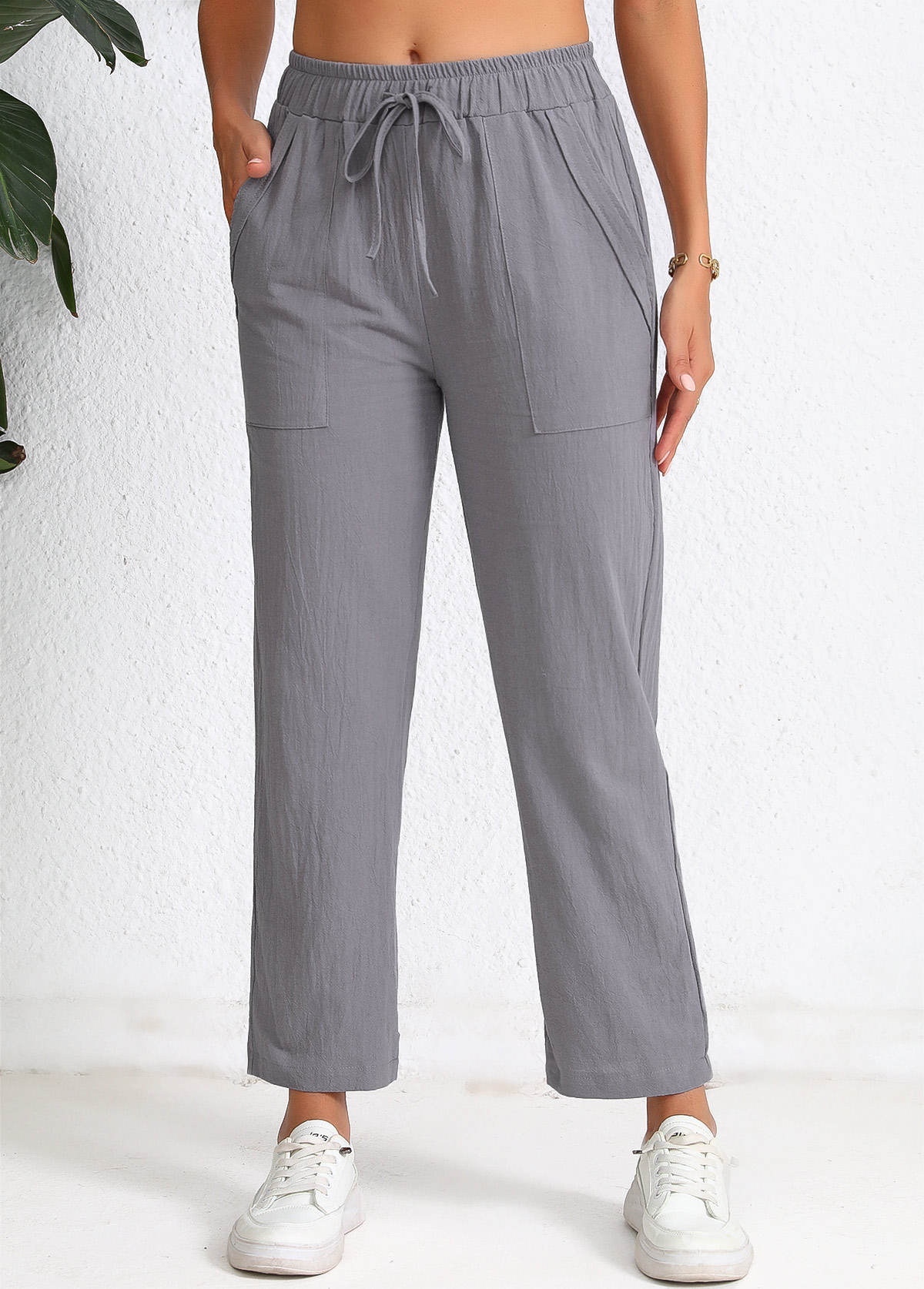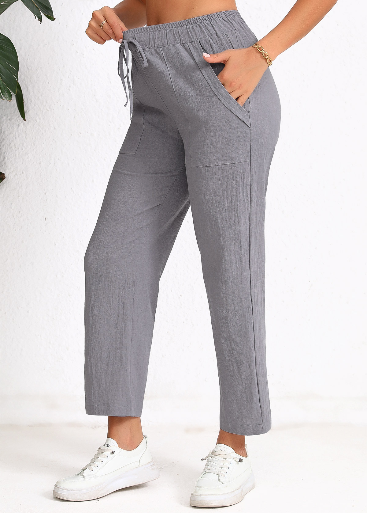 SALE Pocket Dark Grey Elastic Waist High Waisted Pants Rosewe®