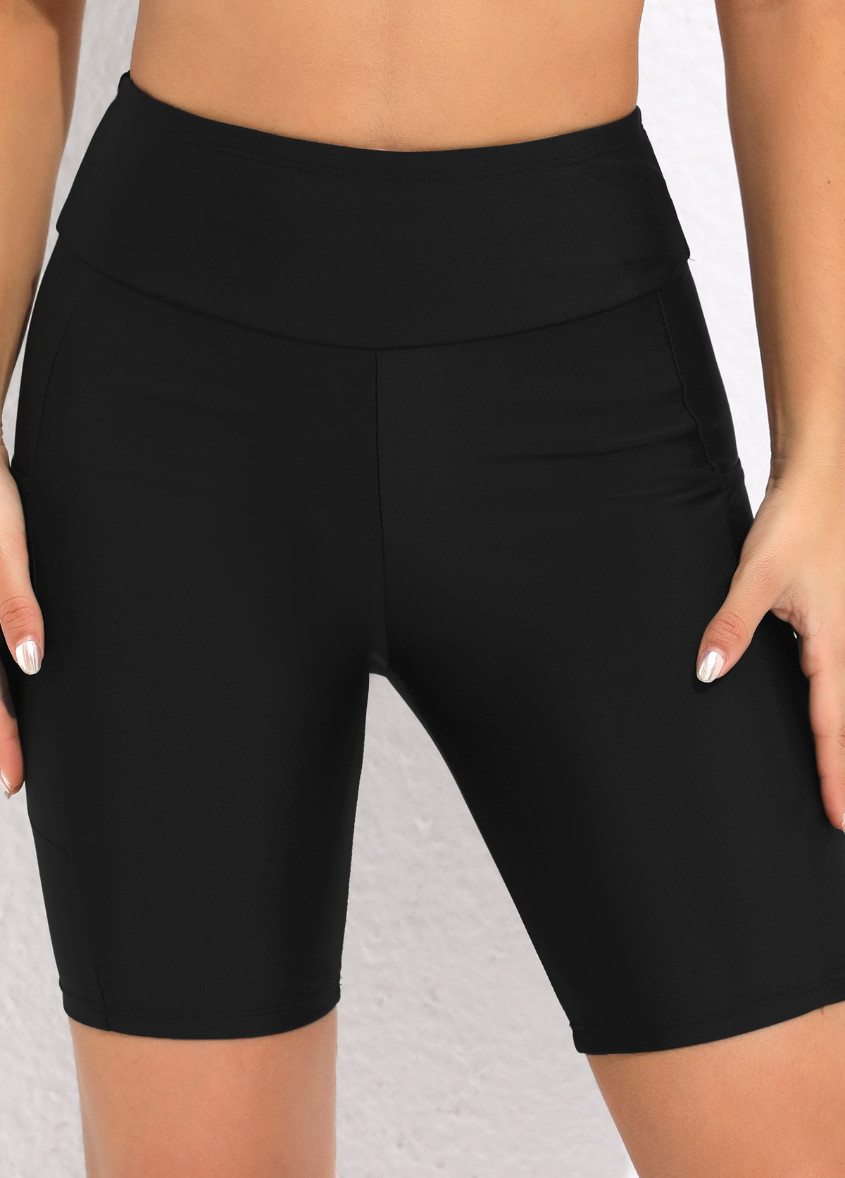 Pocket High Waisted Black Swim Shorts Rosewe®