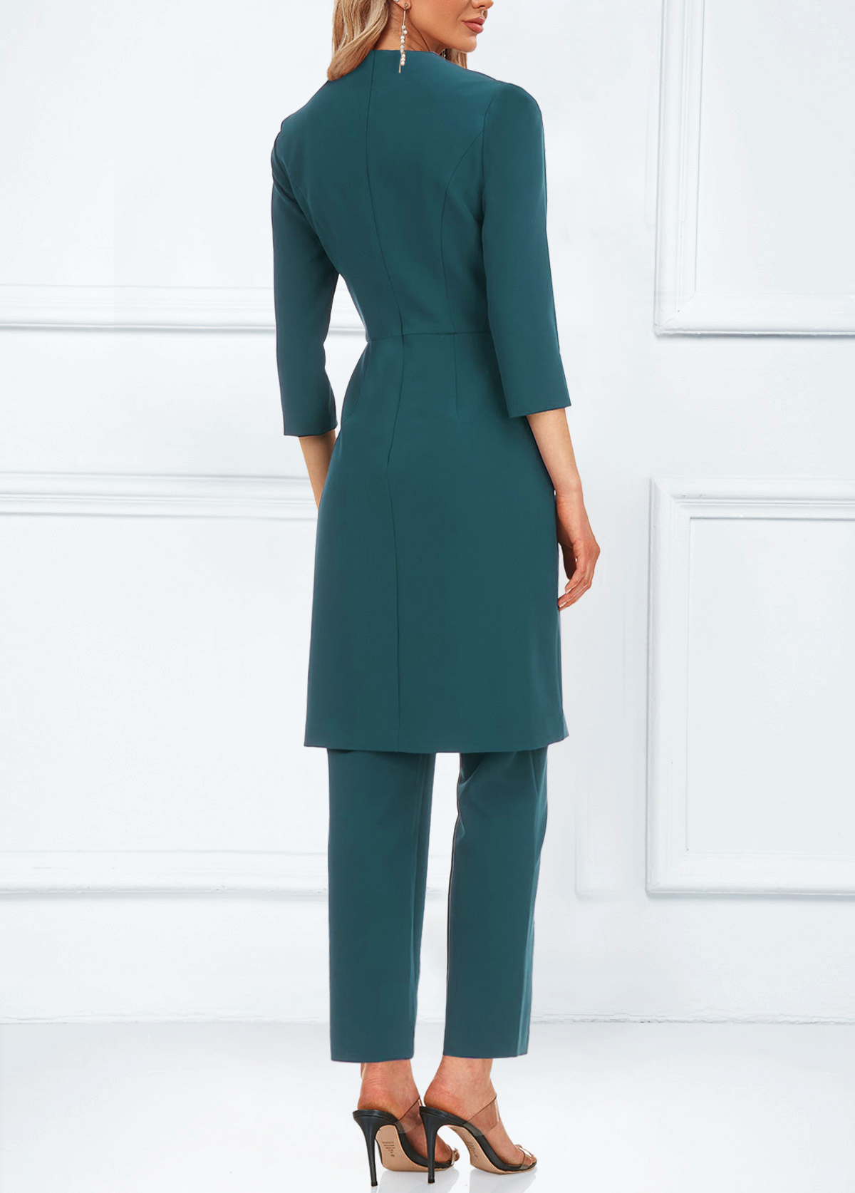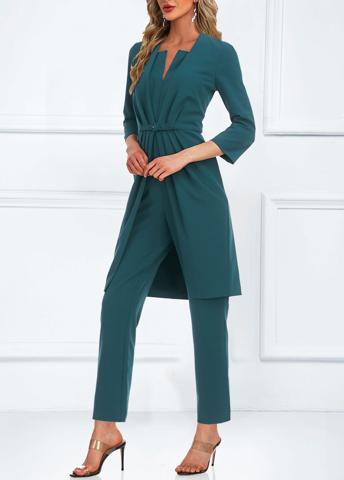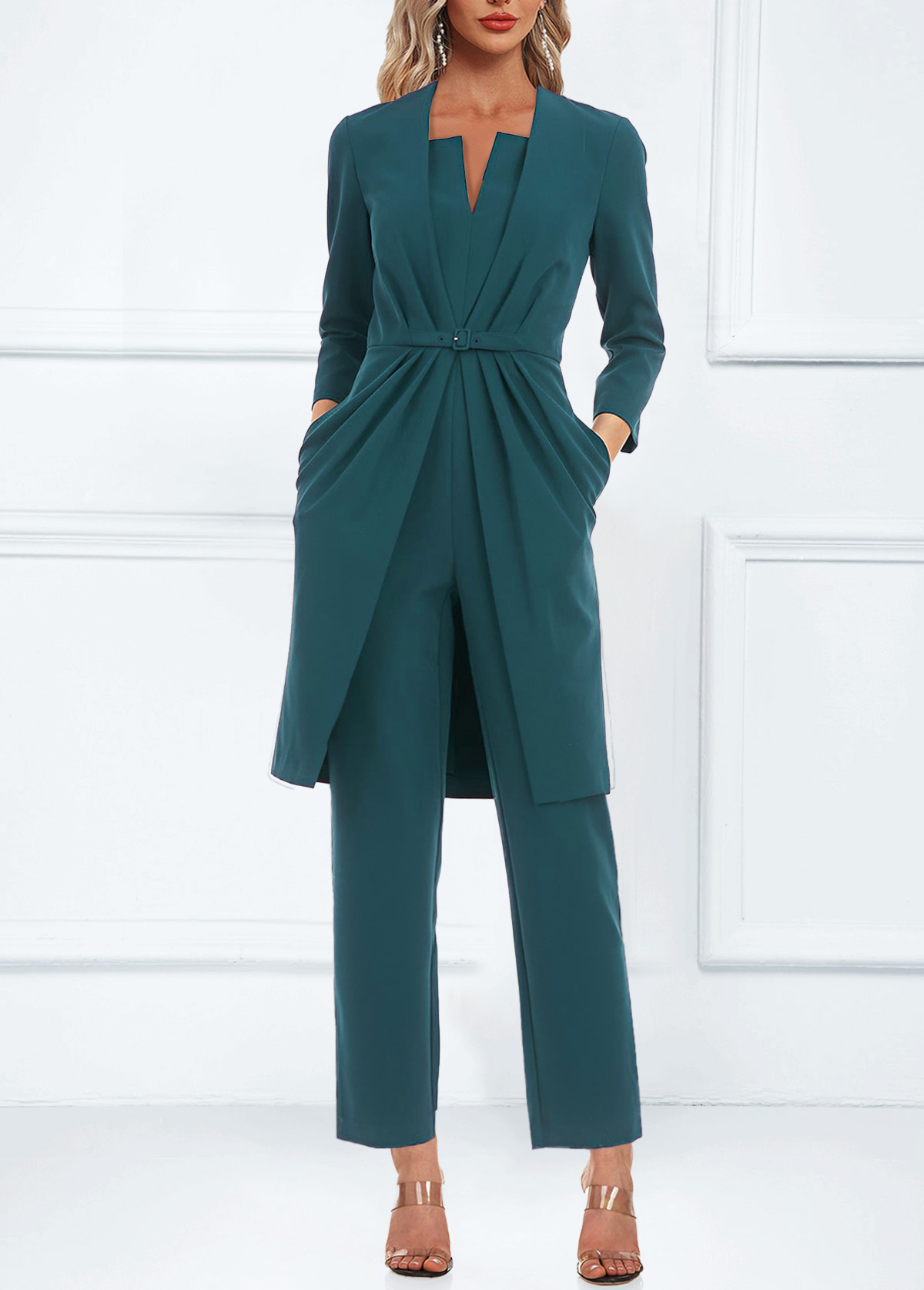 SALE Pocket Turquoise Ankle Length Split Neck Jumpsuit and Cardigan Rosewe®