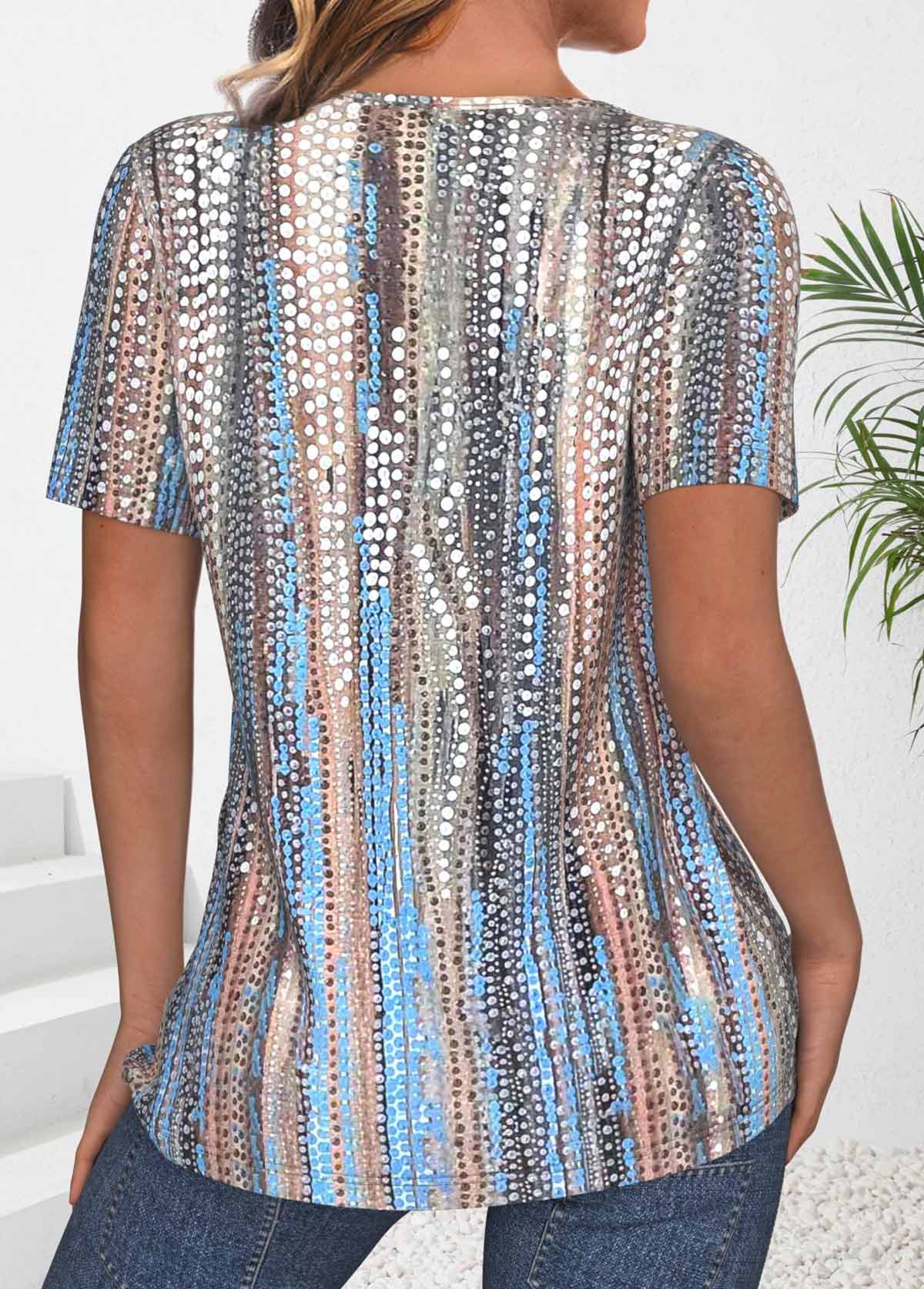 SALE Polka Dot Circular Ring Neon Blue T Shirt Rosewe®