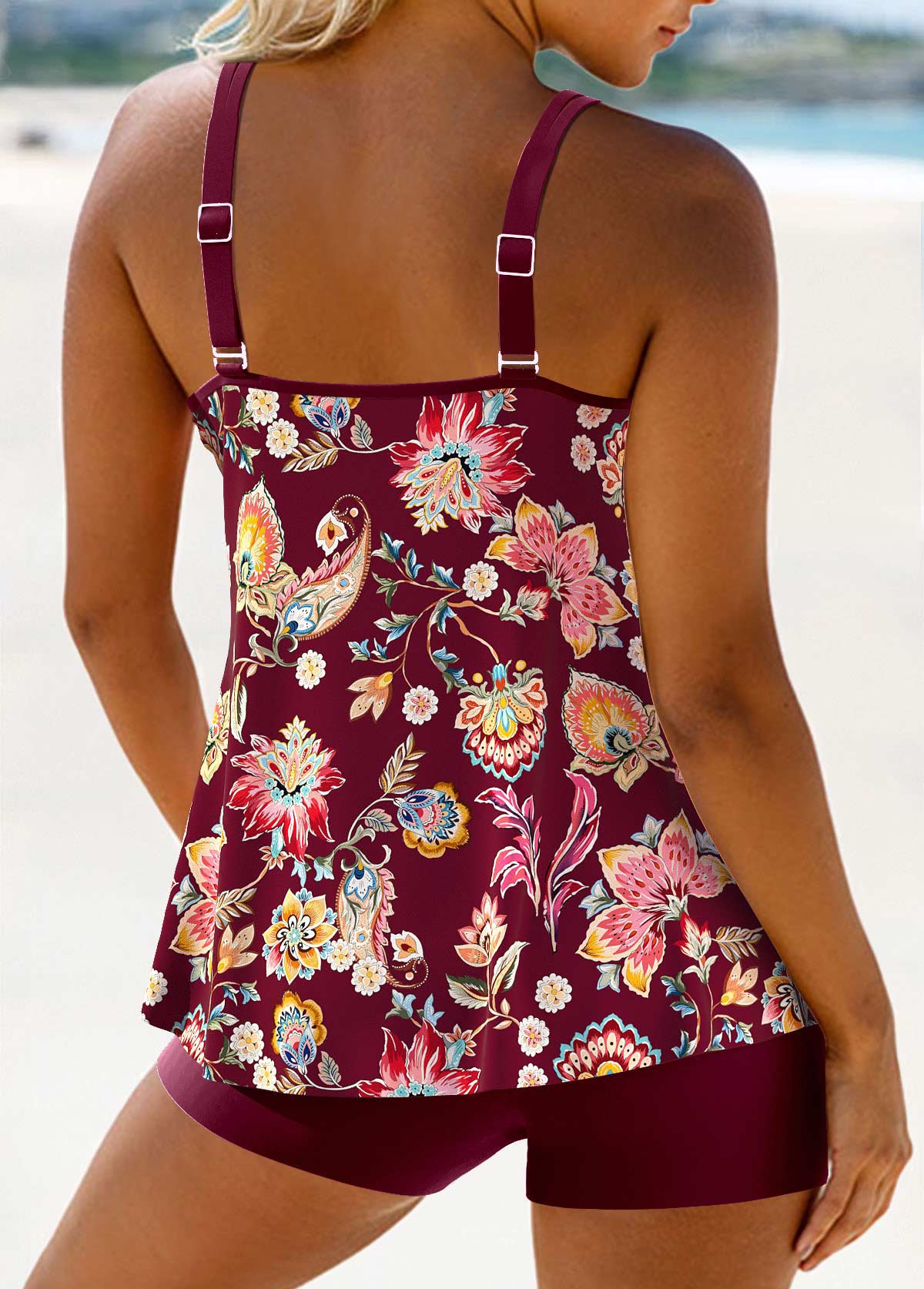 SALE Random Floral Print Lightweight Dark Reddish Purple Tankini Set Rosewe®