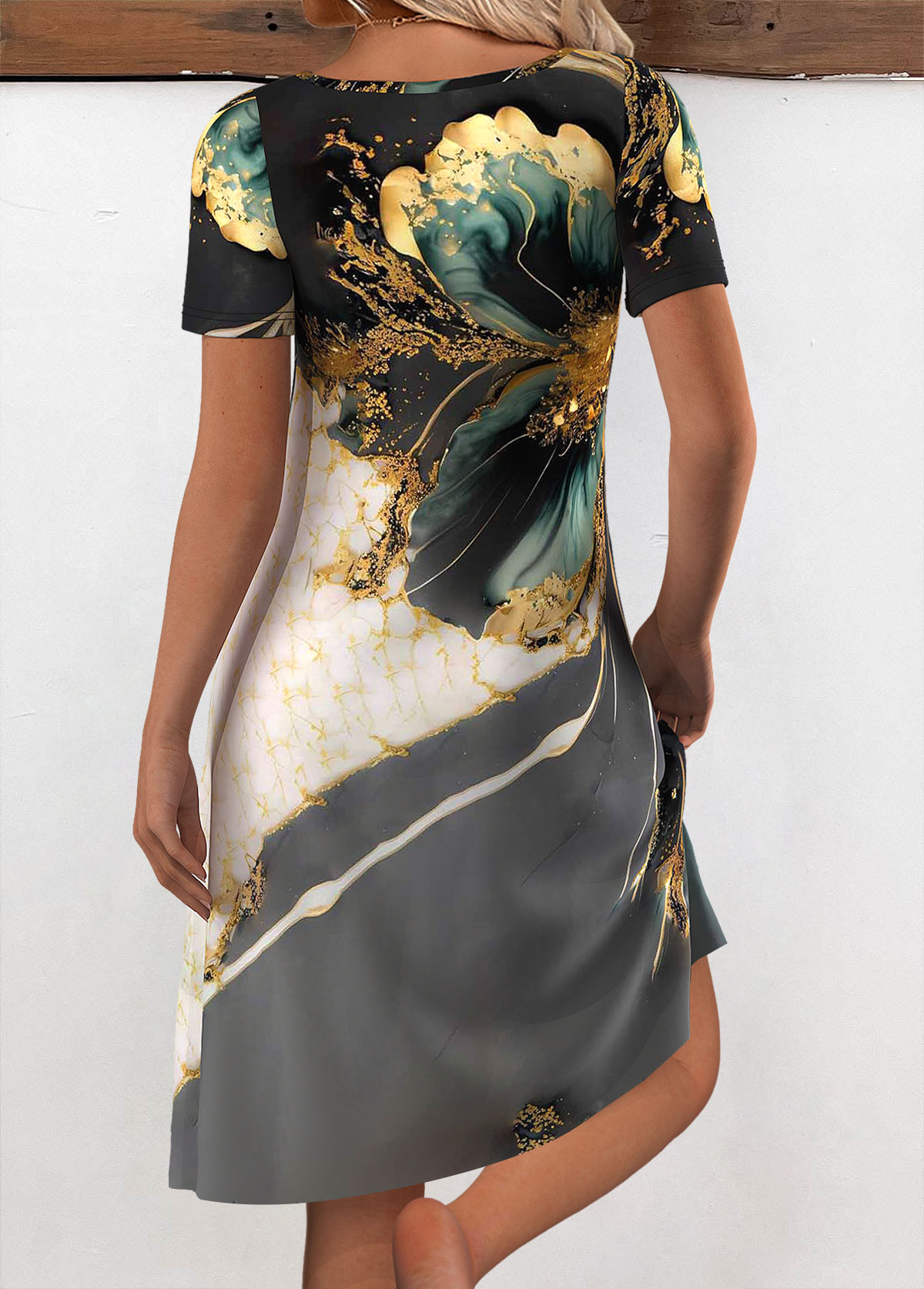 • Random Floral Print Multi Color Short Sleeve Dress